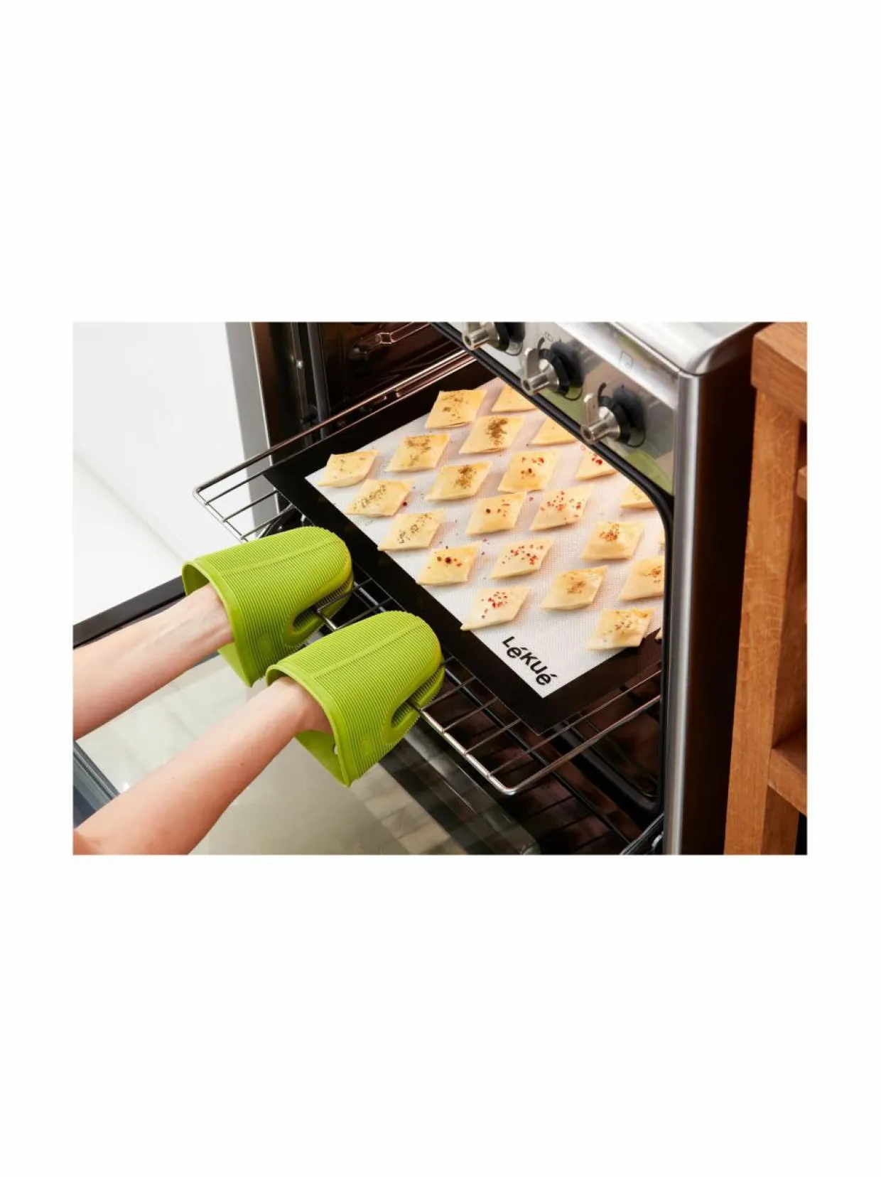 Lékué Leivonta-/paistoalusta on kätevä ja monipuolinen apuväline leivontaan ja paistamiseen. Se on valmistettu silikonista, joka on kestävä ja lämmönkestävä materiaali. Alusta on helppo puhdistaa ja se sopii sekä uuniin että mikroaaltouuniin. Alusta on myös liukastumaton, joten se pysyy paikallaan leivonnan aikana.Mitat: 60×40 cm.