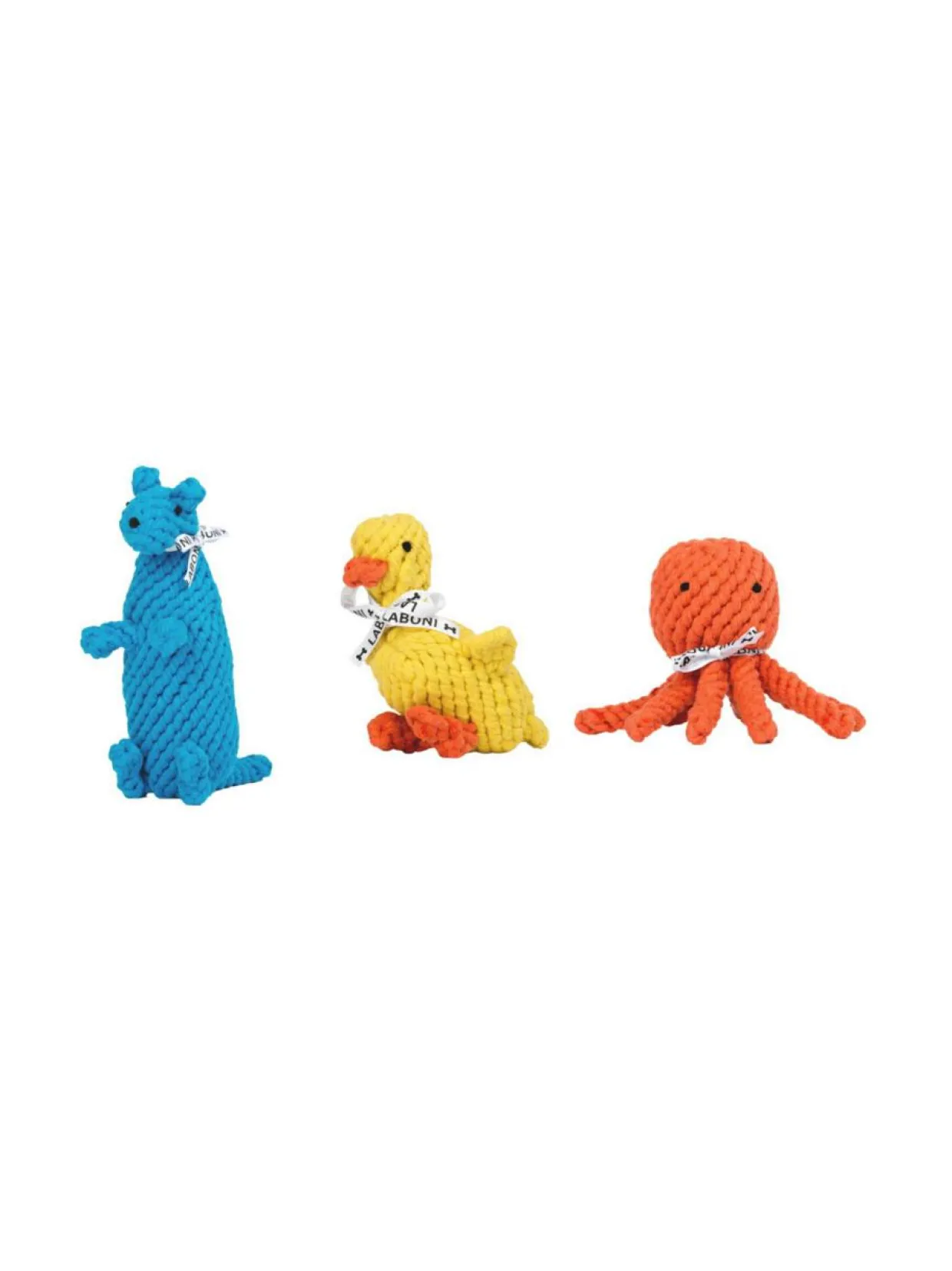 Kaikki Laboni lelut on valmistettu huolellisesti käsityönä 100% puuvillasta, ja värjätty luonnollisilla väreillä. Puuvillakuiduilla on hampaita puhdistava vaikutus, minkä vuoksi tuote ei ole vain koristeellinen, vaan tarjoaa nelijalkaiselle ystävällesi tukea terveiden hampaiden ylläpitoon.