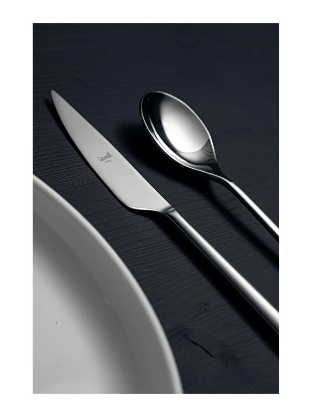 Linea Frozen aterinsetin aterimien kahvat on viimeistelty metallinhohtoisella jäähilemäisellä erikoispinnoitteella. Aterimien yläosat ovat kiiltävää ruostumatonta terästä. Aterinsetti sisältää kuusi ruokahaarukkaa, kuusi ruokaveistä, kuusi ruokalusikkaa ja kuusi kahvilusikkaa. Materiaali on korkealaatuista suomalaista konepesunkestävää ruostumatonta terästä.