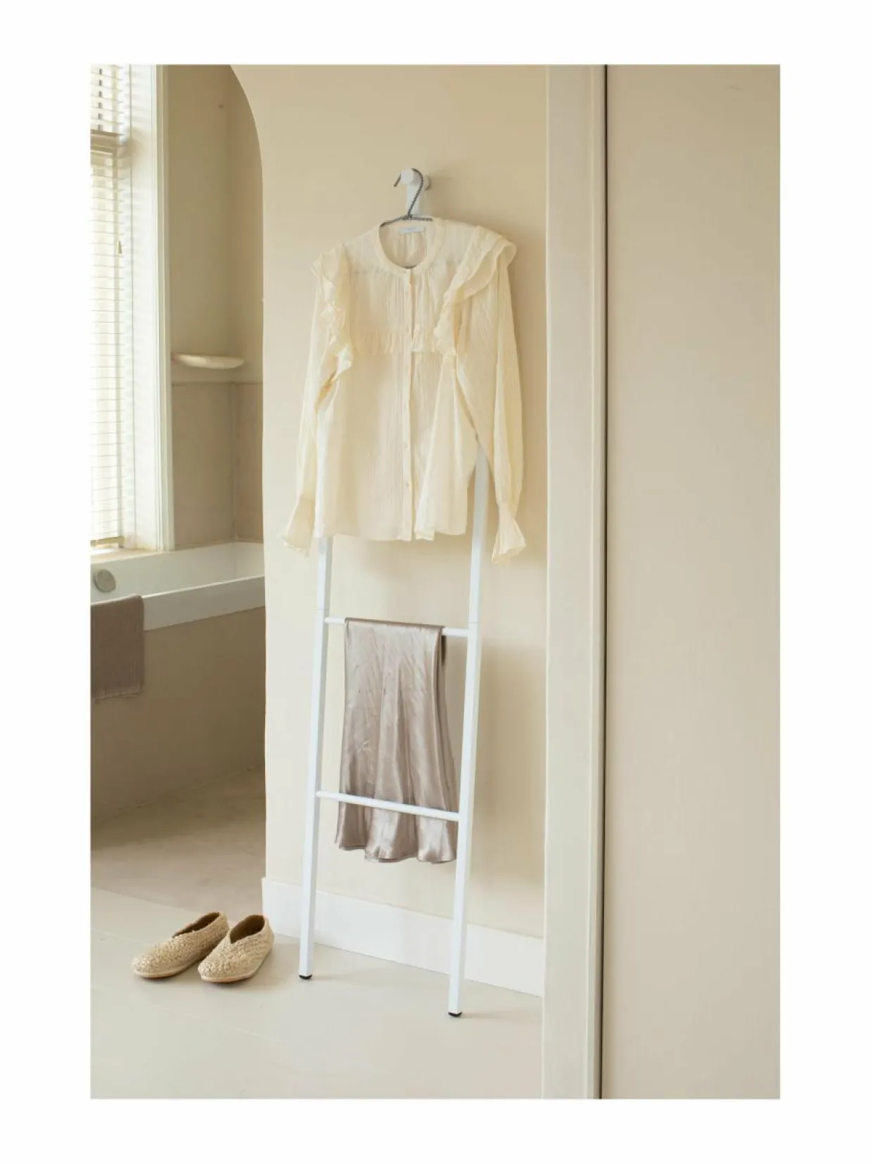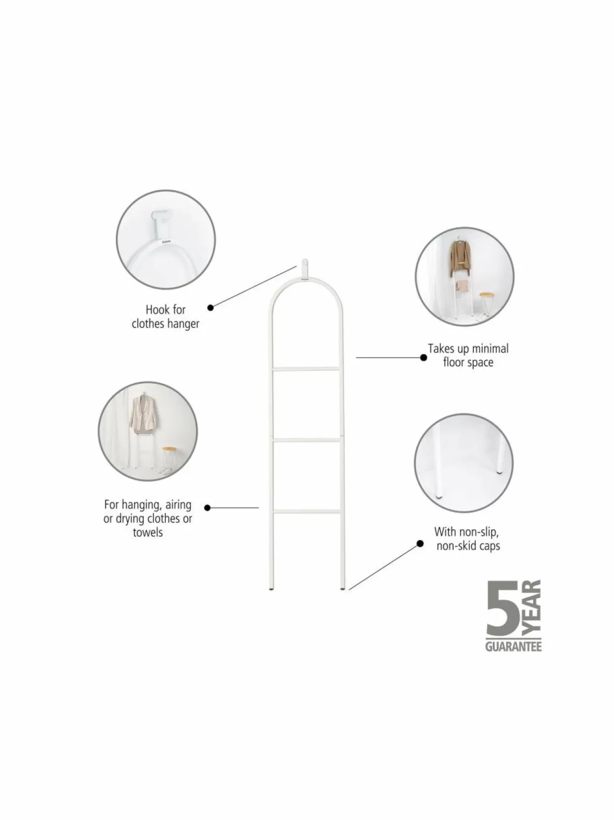 Vaatteiden ripustamiseen ja tuulettamiseen suunnniteltu minimalistinen ja tyylikäs teline. Vaateteline tarjoaa kolme tankoa vaatteiden ripustamiseen, olkapään muotoisen yläosan takille tai puserolle sekä kätevän koukun vaateripustimille. Lisäksi, Linn Dressboy -vaateteline näyttää myös tyylikkäältä seinää vasten nojatessaan tyhjänä.