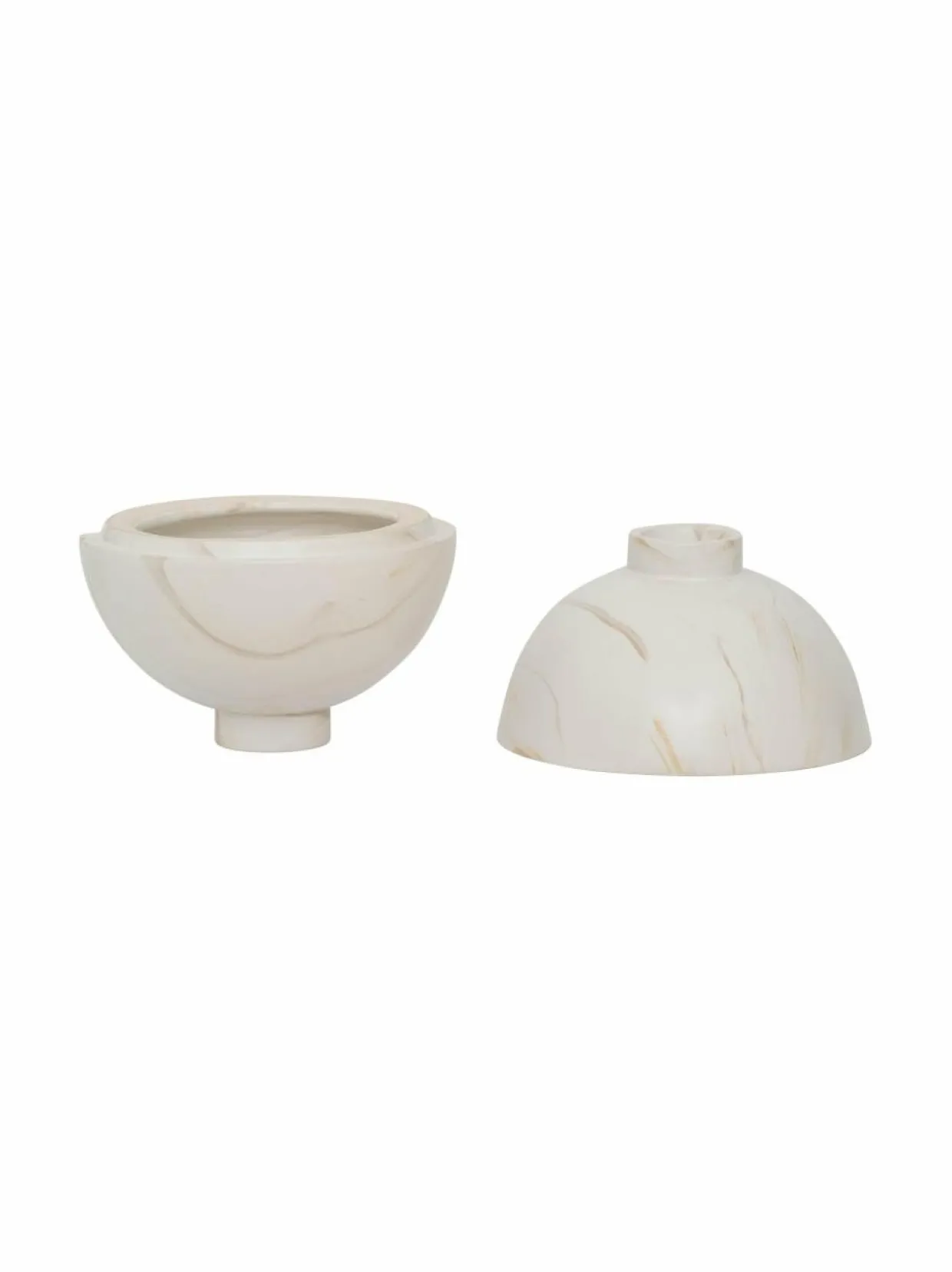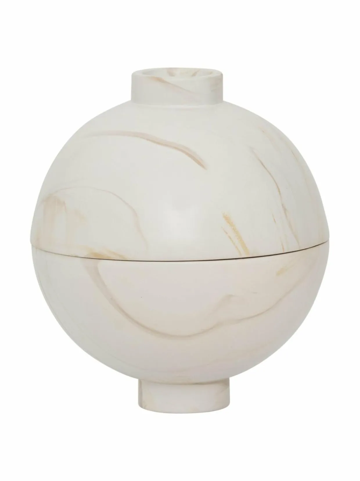 Urban Nature Culturen keraaminen koristekulho Loja osoittaa, että taiteen ja sisustuksen välillä on ohut raja – suunnittelu on taideteos. Mutta todellinen taika piilee sen toimivuudessa. Ainutlaatuisella marmoriefektillään Loja toimii sekä säilytyspurkina että koriste-elementtinä.