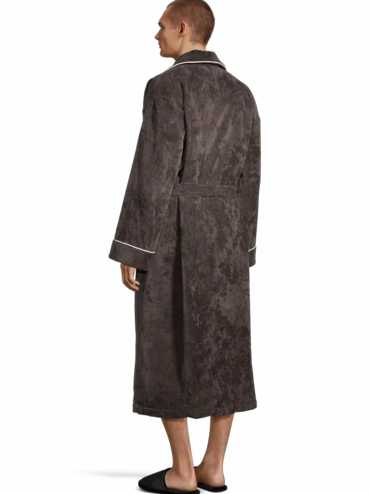 Villa Stockmannin Lounge-kylpytakki on pehmeää puuvillaa, joka tuntuu miellyttävältä ihoa vasten. Kylpytakkia somistavat kontrastiväriset tereet ja kauniit kaulukset. Takki suljetaan vyöllä, ja edessä on avotaskut.