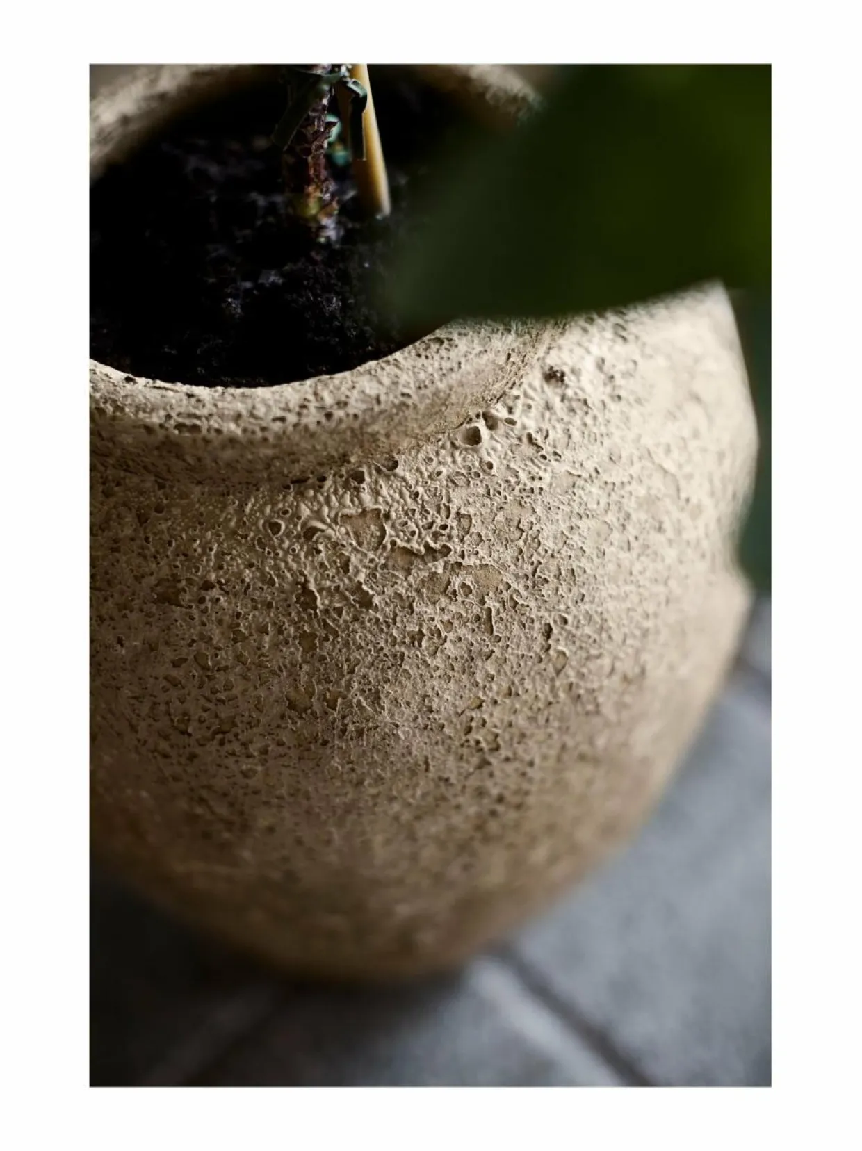 Luna 38 -maljakko on kaunis ja ainutlaatuinen sisustuselementti, joka tuo luonnollisen kauneuden sisustukseen. Se on valmistettu terrakotasta ja se on valettu muottiin. Sen ainutlaatuinen pinta ja lasitus on valmistettu käsityönä. Maali on levitetty ja poltettu käsin, luoden rustiikkisen ilmeen. Jokaisella maljakolla on oma tarinansa ja ilmeensä, mikä tuo sielua ja persoonallisuutta sisustukseen. Luna sopii sekä minimalistisiin että rustiikkisiin sisustuksiin. Maljakkoa tulisi käyttää vain sisätiloissa ja se ei ole vedenkestävä. Se ei ole sopiva suoraan istutukseen. Käytä sen sijaan vedenpitävää muoviruukkua tai vuoraa maljakon sisäosa muovilla pinnan suojaamiseksi. Voit myös asettaa pienen lasin pohjalle ja täyttää maljakon tuoreilla kukilla. Luna on käsityönä valmistettu tuote, joten jokaisen maljakon väri vaihtelee hieman ja sillä on oma, ainutlaatuinen ulkonäkönsä. Maljakon yläreunan halkaisija on 15,5 cm. Maljakon mitat ovat 33 x 38 cm.