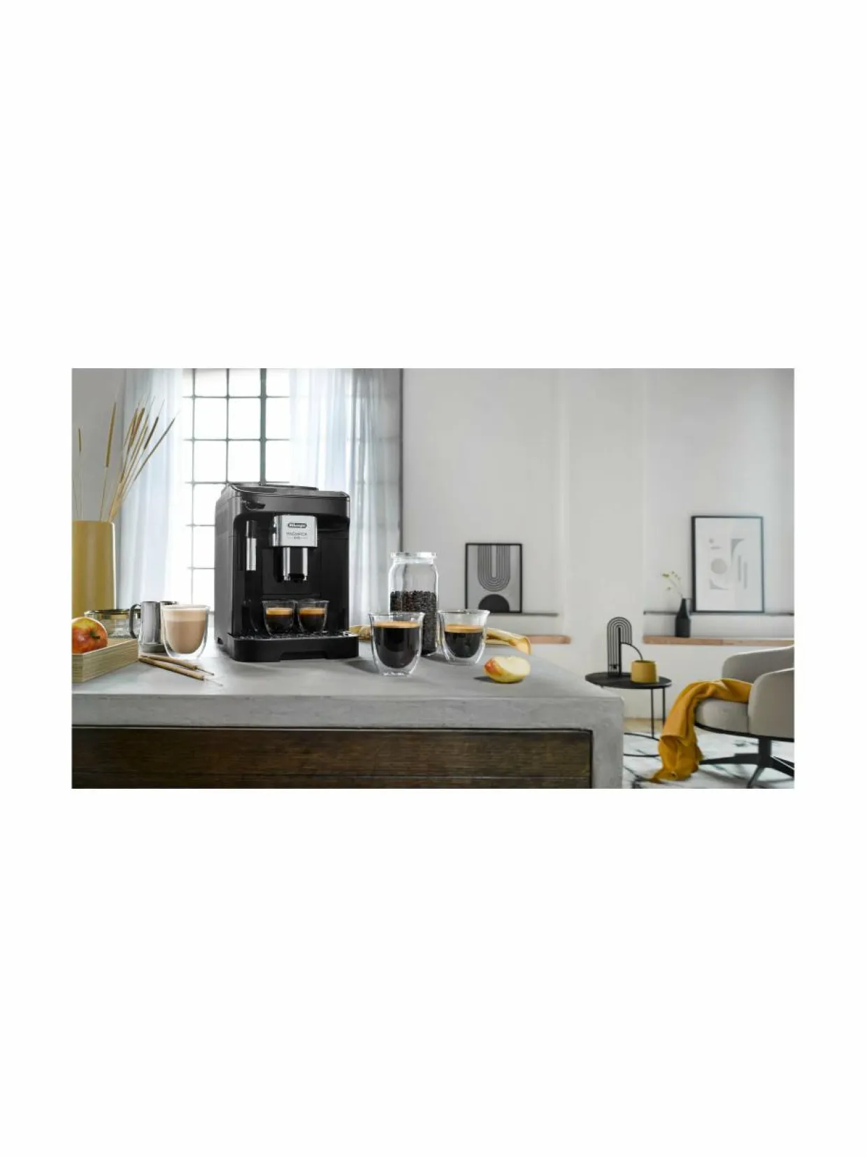 Kompakti De’Longhi Magnifica Evo kahviautomaatti on suunniteltu palvelemaan heitä, jotka haluavat valmistaa kahvinsa nopeasti ja helposti, kahvin mausta tinkimättä. Värillisillä kuvakkeilla varustetusta käyttöpaneelista näet kaikki valittavissa olevat reseptit kerralla ja täydellinen kahvi valmistuu vain yhdellä painalluksella.Integroitu teräksinen kahvimylly jauhaa automaattisesti oikean määrän papuja valitsemasi kahvireseptin mukaan ja nautit aina vastajauhetun kahvin aromikkaasta mausta, joka kupillisella. Kahvin pituus, vahvuus ja lämpötila on helposti muokattavissa ja halutessasi voit valmistaa kahvia myös kahvijauheesta.Valittavana on Espresso, Coffee tai Doppio+ ja x2 -toimintonäppäin tuplaa Espresson. Höyryreseptin avulla käsittelet maidon hetkessä ja houkutteleva Cappuccinosi on valmis nautittavaksi, täydellisen kermaisalla vaahdolla kruunattuna.Käyttäjäystävällisen Magnifica Evo -kahviautomaatin kanssa nautit huolettomista kahvihetkistä.