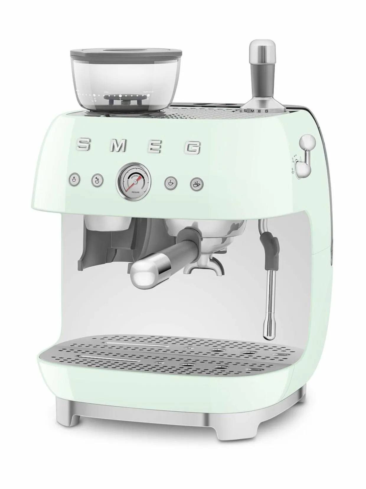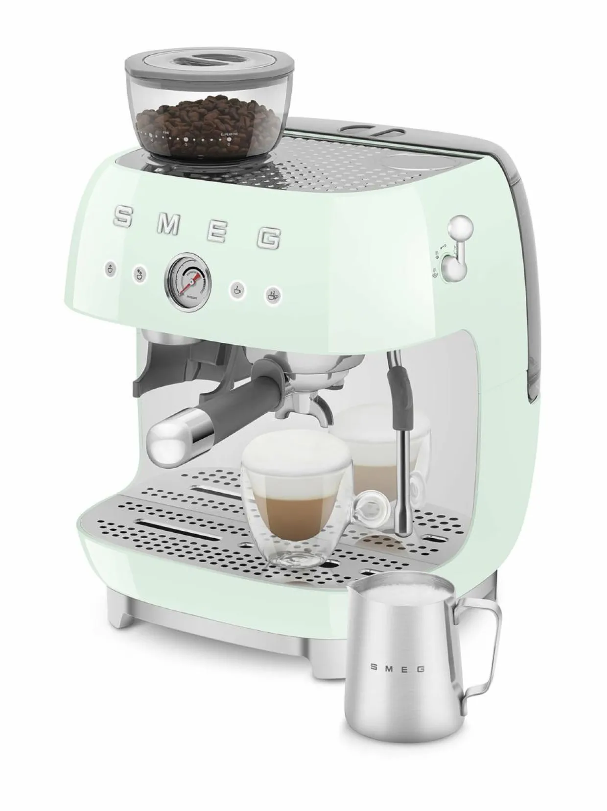 Smegin laitekokoelma on laajentunut uudella espressokeittimellä, jossa on integroitu kahvimylly – ehdoton hankinta todellisille kahvin ystäville!