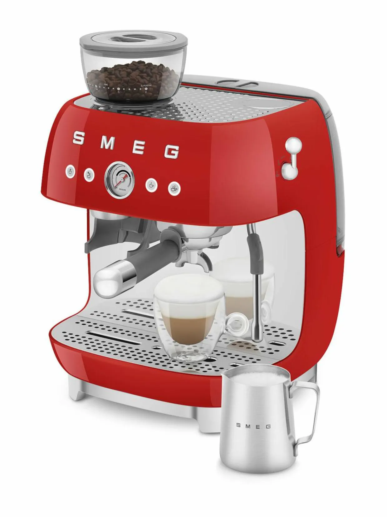 Smegin laitekokoelma on laajentunut uudella espressokeittimellä, jossa on integroitu kahvimylly – ehdoton hankinta todellisille kahvin ystäville!