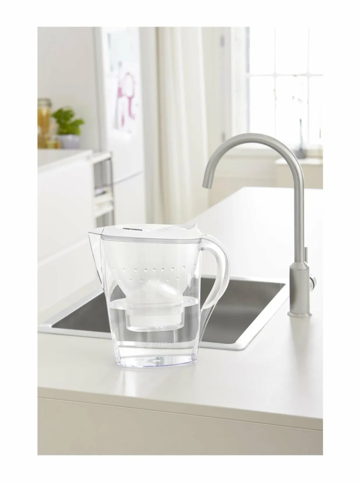 Vedensuodatuskannu Marella on biopohjaista muovia. Astiassa on kätevä kansi, joka mahdollistaa sen täyttämisen vaivattomasti yhdellä kädellä. Älykäs ja luotettava BRITA Memo -vedensuodattimen vaihtoilmaisin muistuttaa, kun on aika vaihtaa suodatinpatruuna. Näin ei tarvitse arvailla suodattimen vaihtoaikaa.