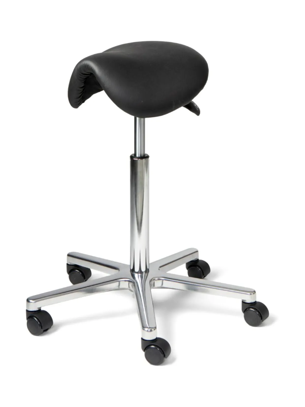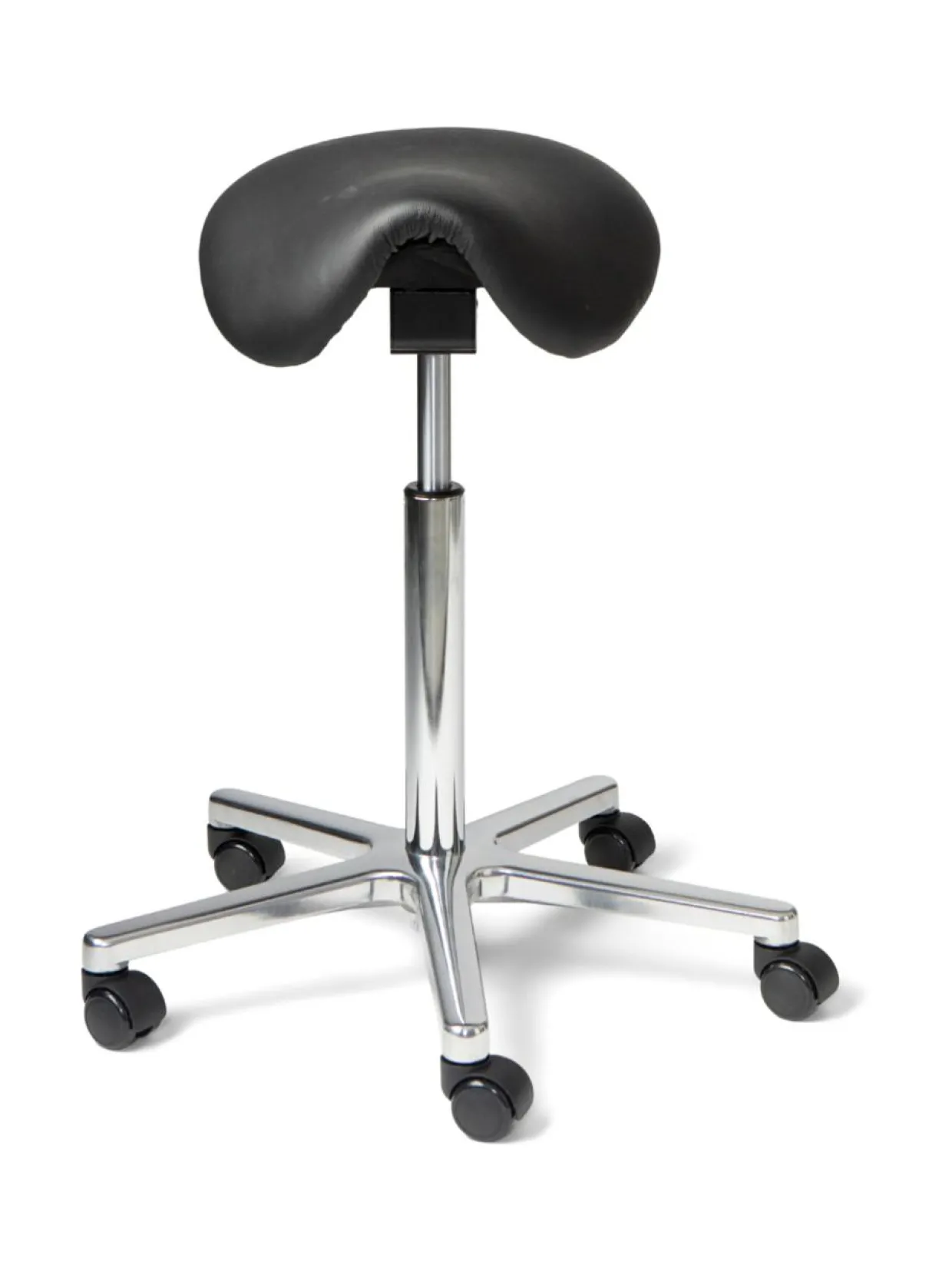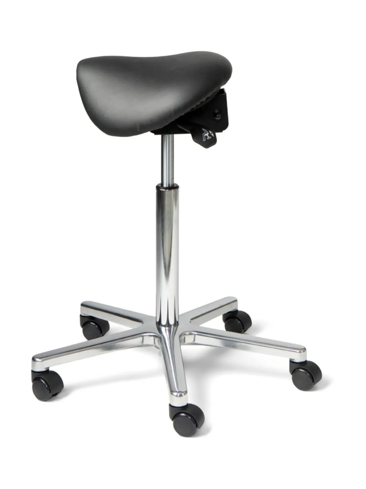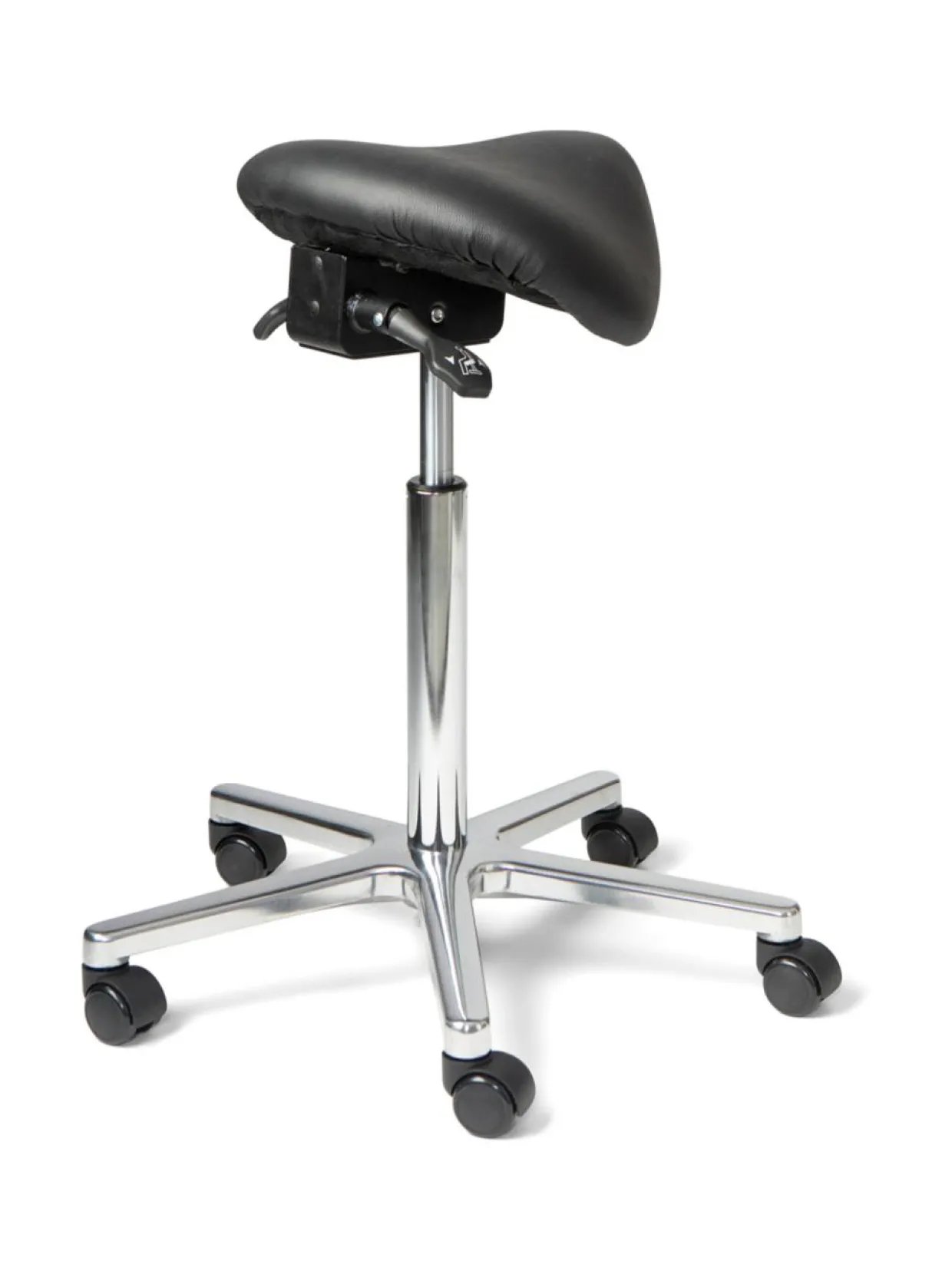 Matilda satulatuolissa on pehmeä, miellyttävästi muotoiltu istuin, joka on verhoiltu aidolla nahalla. Erittäin hyvä vaihtoehto, kun tarvitset satulatuolin, joka antaa hyvän ryhdin. Soveltuu kaikenkokoisille käyttäjille. Matilda satulatuolissa on istuimen kallistuksen säätö. Istumakorkeus 60-85cm, ristikko 610 mm.