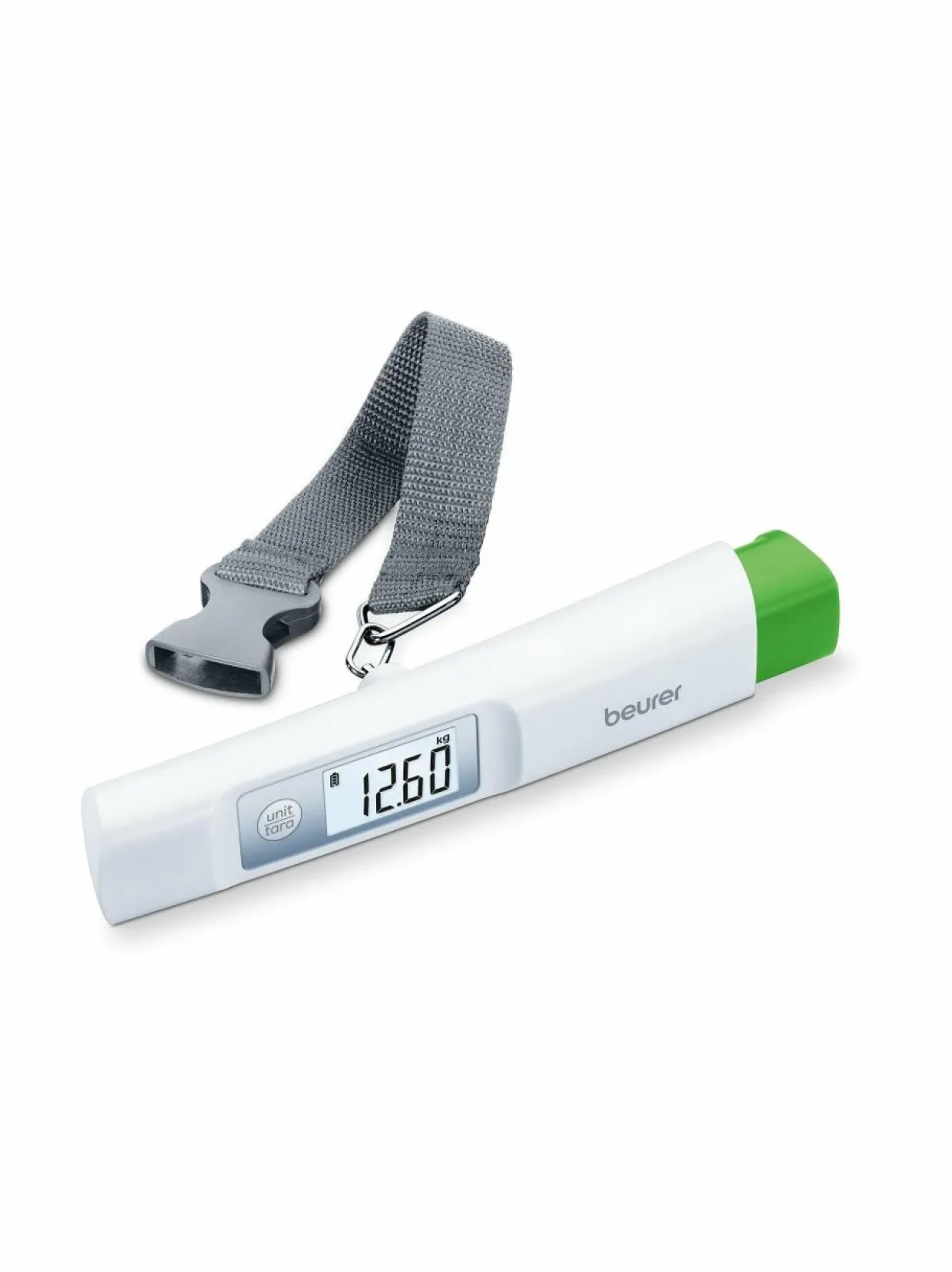 Beurer matkalaukkuvaaka eroaa muista matkalaukkuvaakoista siinä, että tämä vaaka toimitetaan ilman paristoja. Siinä on dynamoparisto, jonka avulla matkalaukkuvaaka kytkeytyy päälle painamalla dynamopainiketta. Ostamalla Beurer matkalaukkuvaa’an vältät painomaksut lentokentällä ja säästät myös maapallon resursseja, sillä vaa’assa ei ole omaa akkua. Ominaisuudet: