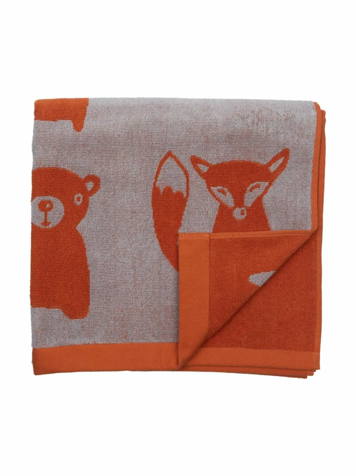 Minna Niskakankaan suunnittelema Metsänväki-lastenmallisto tekee lapsen huoneesta hauskan tutkimusretken Suomen luonnon äärelle. Kylpypyyhe on toiselta puolelta oranssi ja toiselta vaalean beige. Lasten pyyhkeen koko on 70×140 cm. Materiaali: 100 % puuvillafrotee, kankaan paino 450 gr/m2