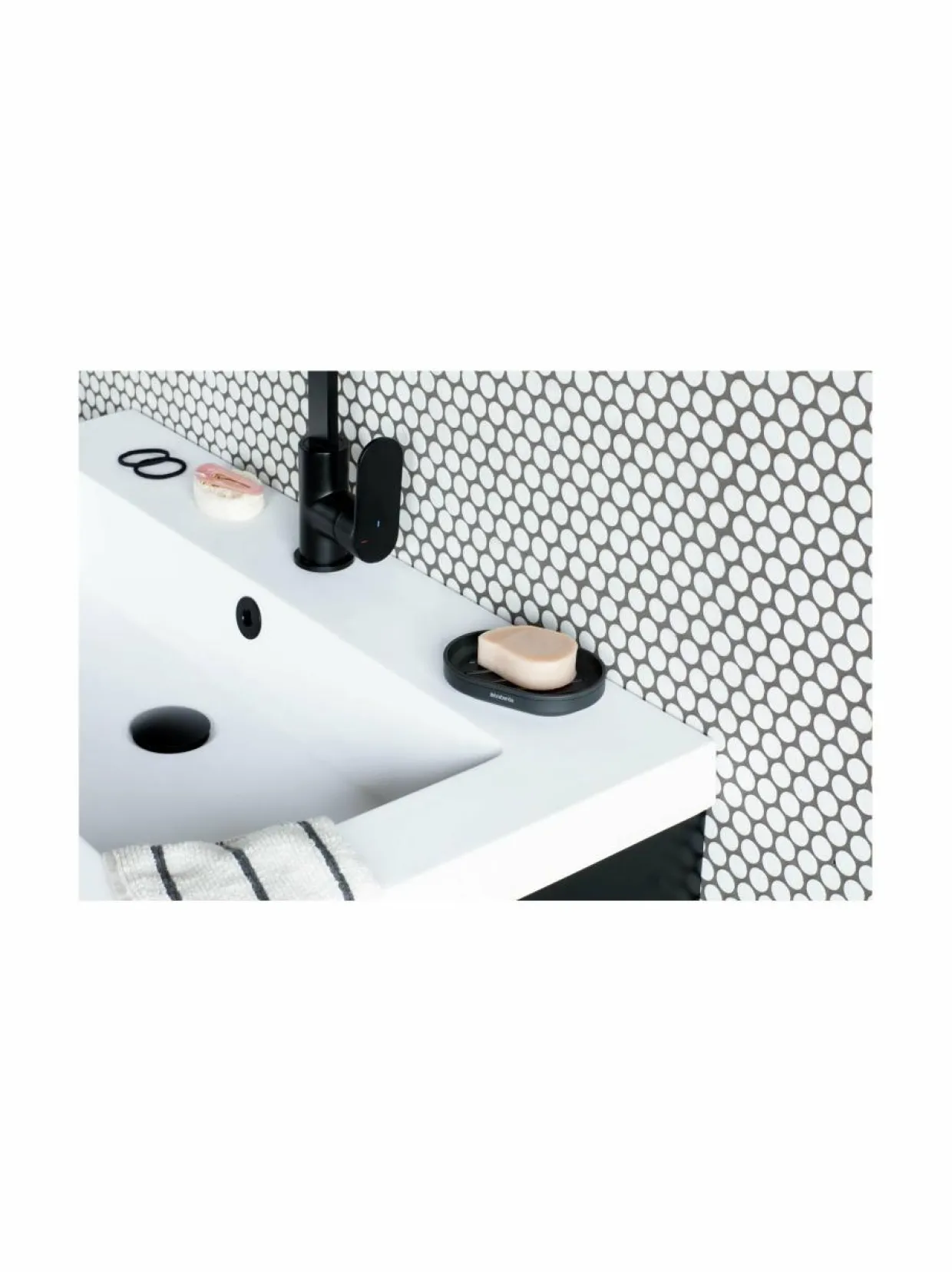 Brabantia MindSet -saippuaalusta on suunniteltu pitämään saippuasi kuivana ja se on riittävän suuri täysikokoisenkin saippuapalan säilyttämiseen. Liukumattomat jalat pitävät sen tiukasti paikallaan.