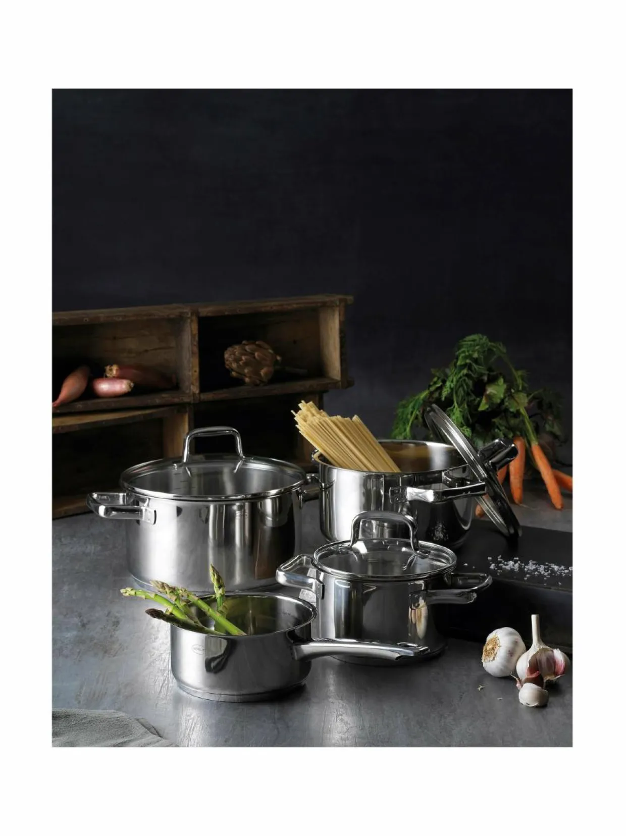 Röslen Moments-kattilasetti sisältää kaiken, mistä kotikokki voi keittiössään unelmoida. Tyylikkääseen kattilasettiin kuuluu seitsemän eri osaa: 1,5-litrainen kasari, 2-litrainen kattila, 3,6-litrainen kattila, 5,8-litrainen kattila sekä kolme lasikantta, jotka mahdollistavat ruoanlaiton seuraamisen kantta avaamatta. Ruostumattomasta teräksestä valmistetut Moments-kattilat soveltuvat uuniin sekä kaikille liesityypeille, myös kaasu- ja induktioliedelle. Kansi kestää jopa 180°C lämpötilan. Halkaisija 16–24 cm.