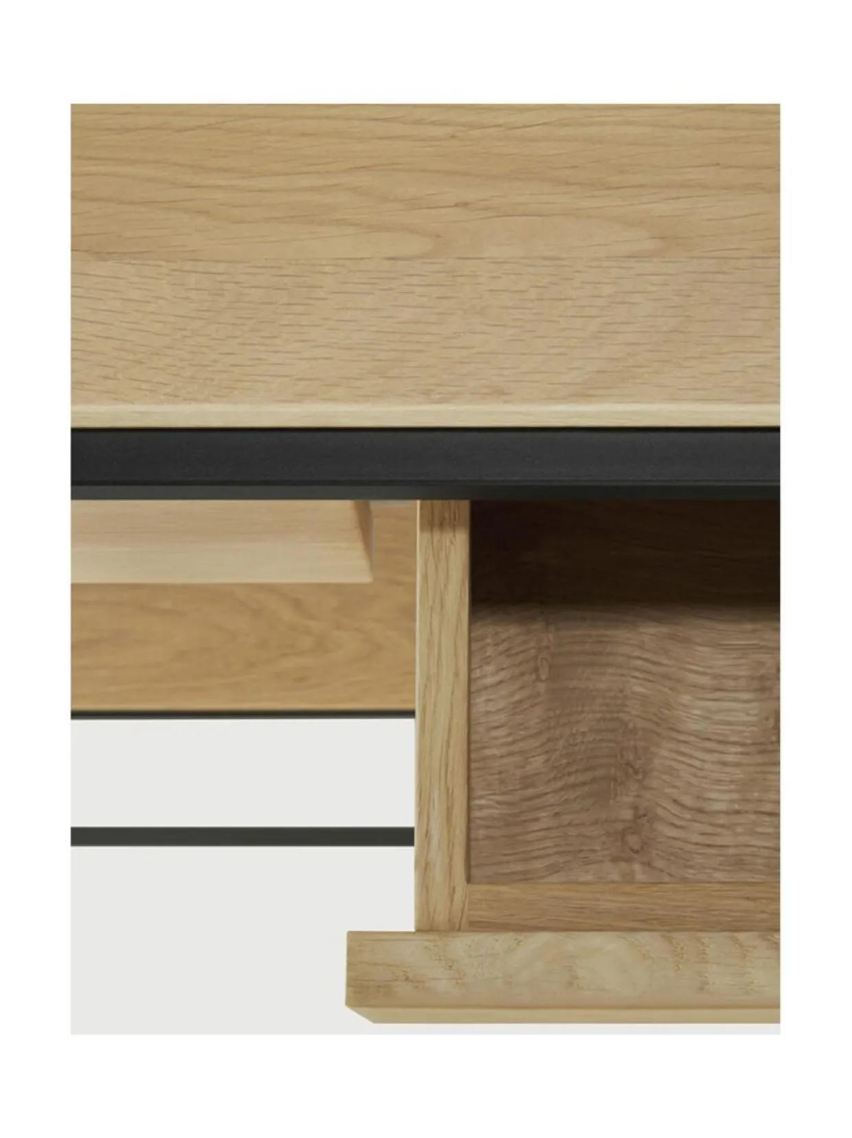 Konsolipöytä Monolit kahdella vetolaatikolla. Puun ja suorakulmaisen metallikehyksen kontrasti luovat ainutlaatuisen yhdistelmän Monolit-tuoteperheessä.