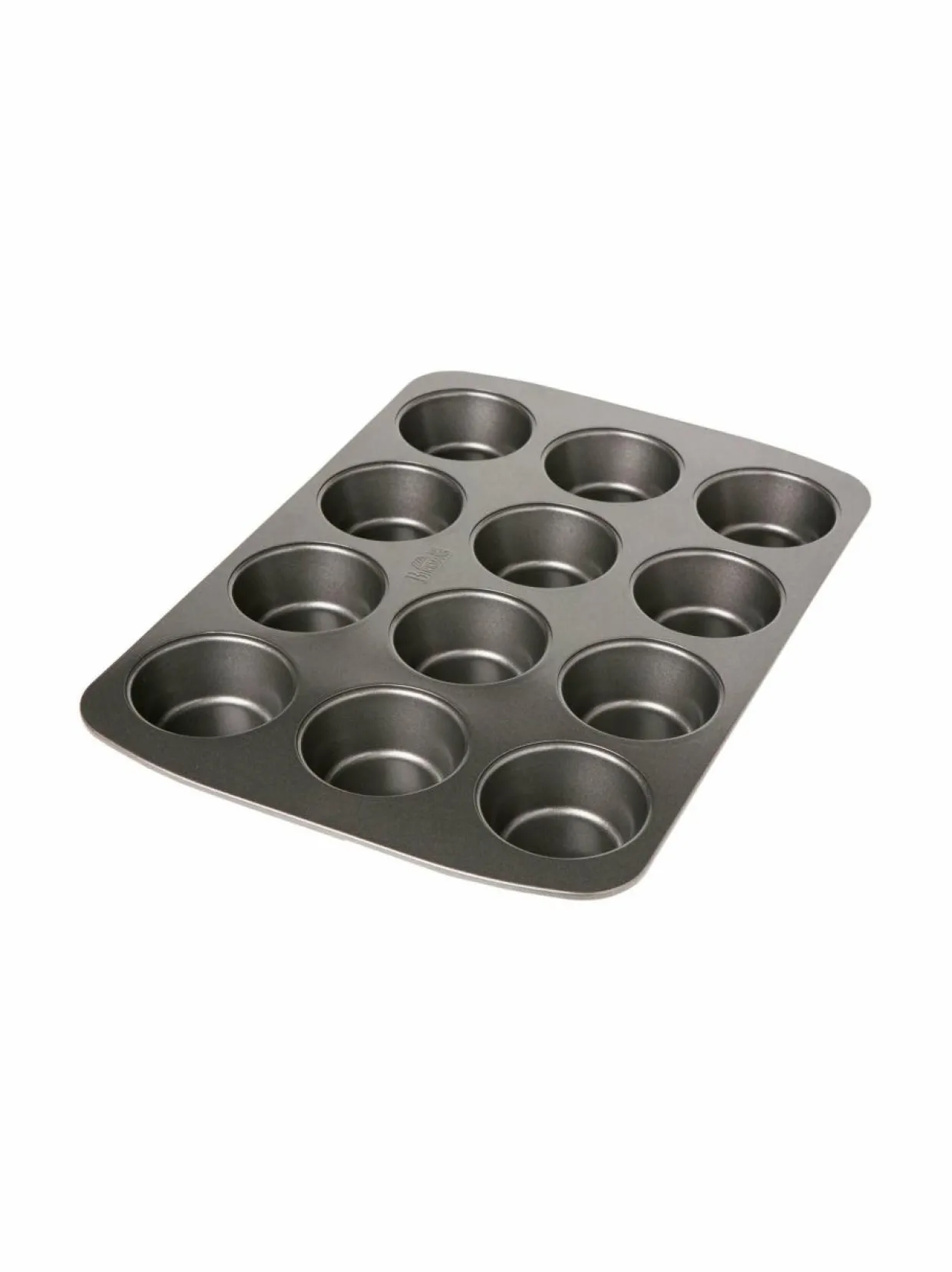 Muffinivuoassa valmistat helposti 12 kappaletta makeita tai suolaisia leivonnaisia. Vuoassa on tarttumaton pinnoite. Yhden kupin halkaisija on 7 cm ja vuoan koko 37 x 26 cm.