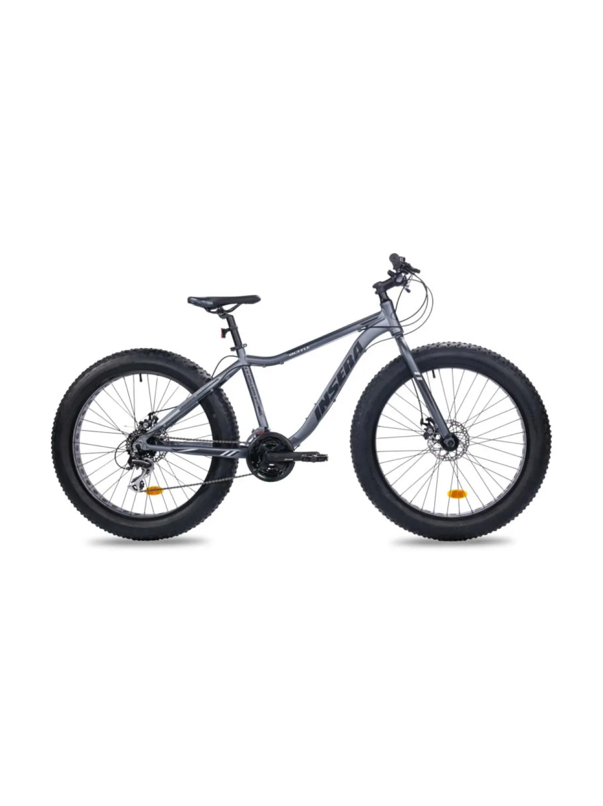 Insera Muffle 26 on Suomessa suunniteltu alumiinirunkoinen fat bike. Komponenttien valinnassa on huomiotu Suomen vaativat keli olosuhteet. Muffle 26 on tarkoitettu fat bike harrastusta aloittelevalle kuskille sekä luonnosta nauttivalle satunnaiselle pyöräilijälle. Mufflella pääset kokemaan vaikka lähimetsäsi haastavammat polut mukavasti leveiden 4 tuumaisten renkaiden kanssa. 26×4,00 renkaiden ilmatila on normaaliin pyörän renkaaseen verrattuna massiivinen ja tämä tuokin ajomukavuuden aivan omalle tasolle, kun lähdetään epätasaisempaan maastoon pyöräilemään. Luotettavat 21v Shimanon vaihteisto ja turvalliset levyjarrut tuovat turvallisuutta sekä mahdollisuuden valita se haastavampi maastoreitti tai lumisen peltoaukean ylitys. Käyttäjäkokosuositus: 160– 185cm. Runkotakuu 5 vuotta.