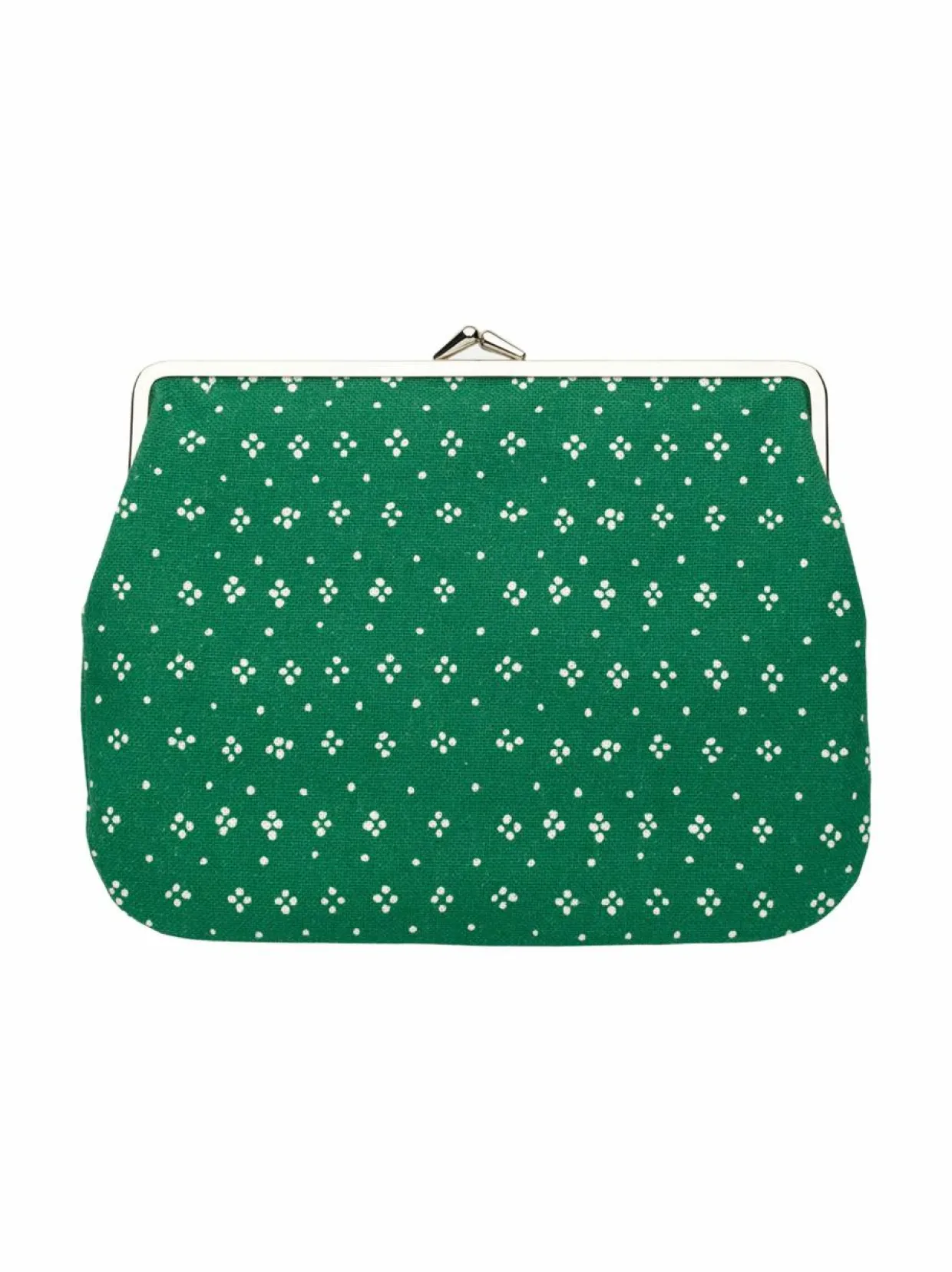 Marimekon Muija Puolikas Kukkaro -kotelo on valmistettu Muija-kuosisesta puuvillapellavakankaasta, joka on painettu Helsingissä. Tilavassa kotelossa on metallinen kehys, joka on helppo napsauttaa auki ja kiinni.
