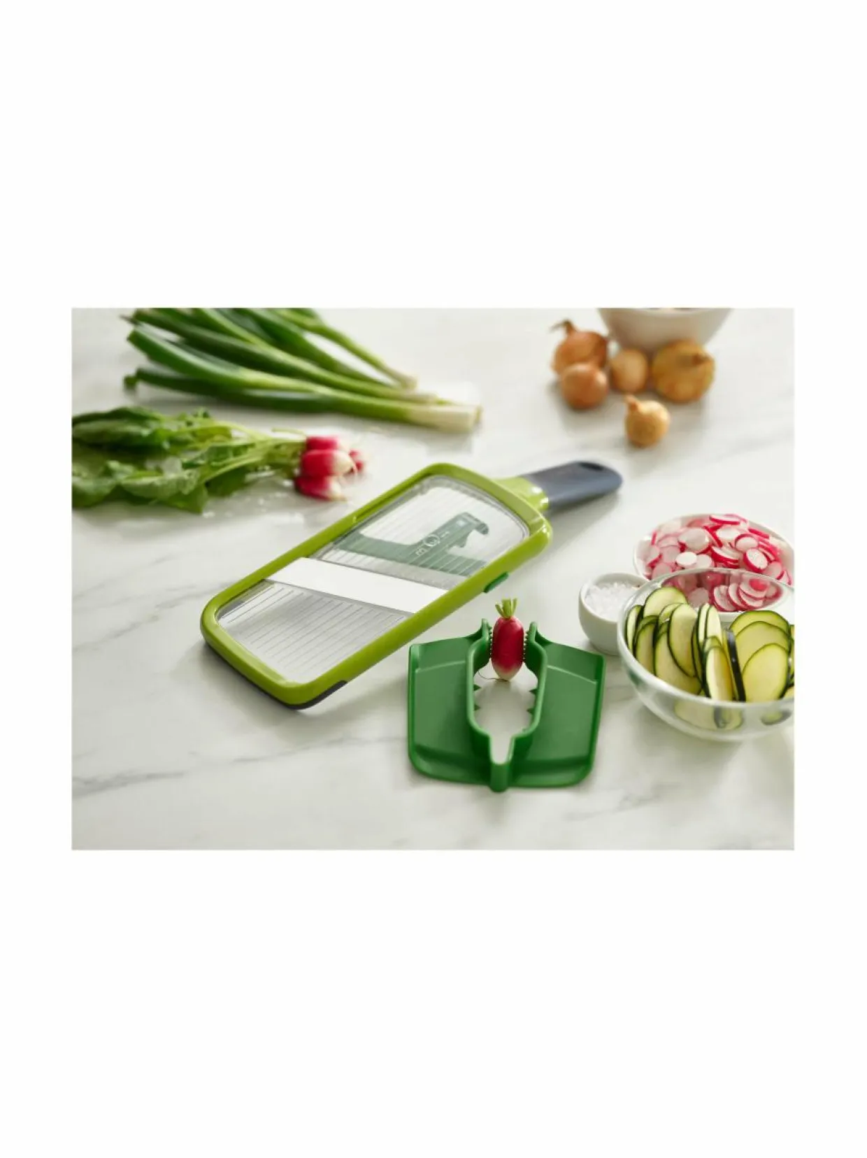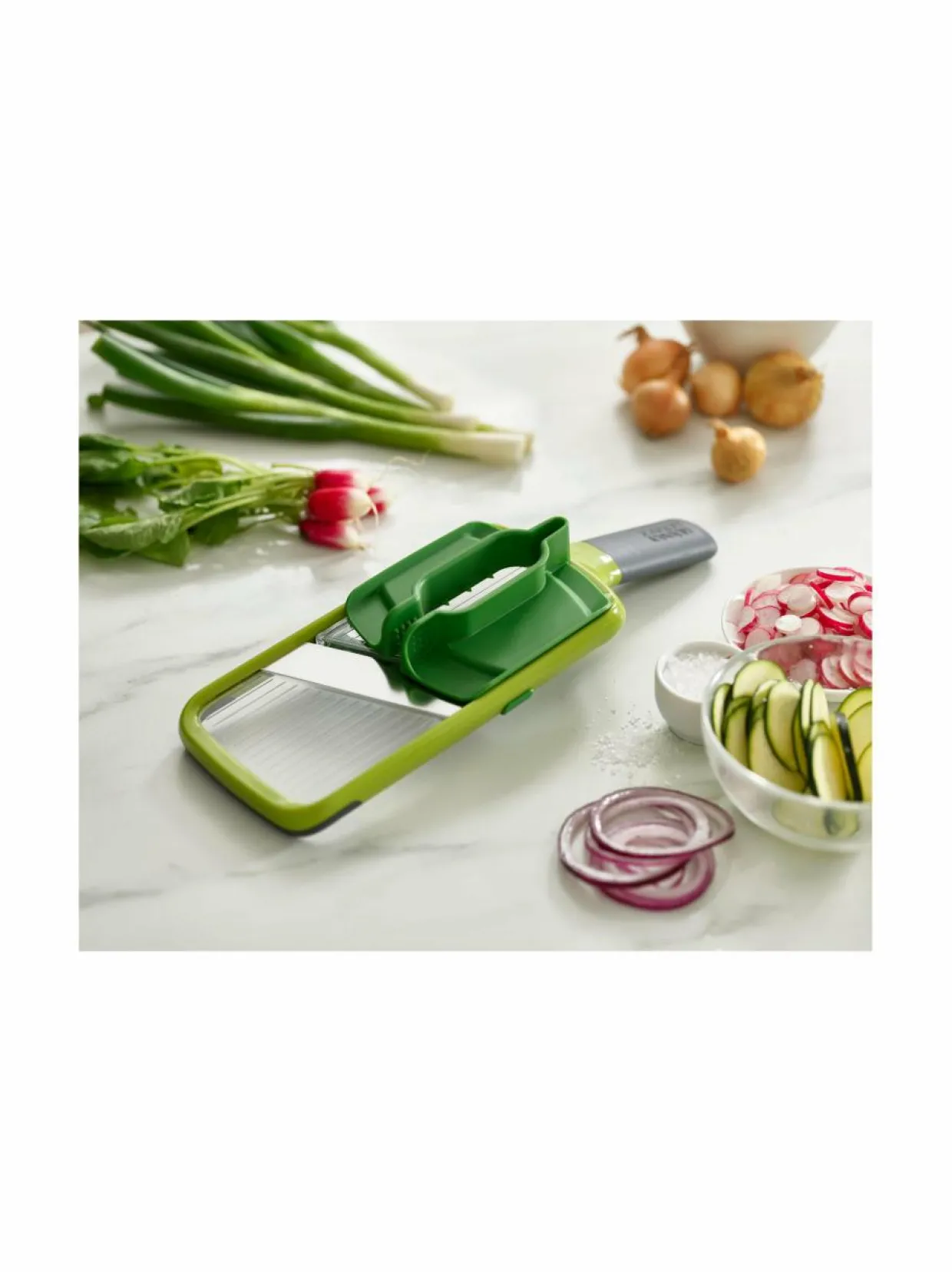 Käsikäyttöinen Multi-Grip-mandoliini on helppokäyttöinen ja turvallinen. Leikkurilla voi leikata kolmea eri paksuutta. Mandoliinissa on liukumaton kärki ja kätevä suoja, jonka ansiosta sormet eivät ajaudu liian lähelle terää.