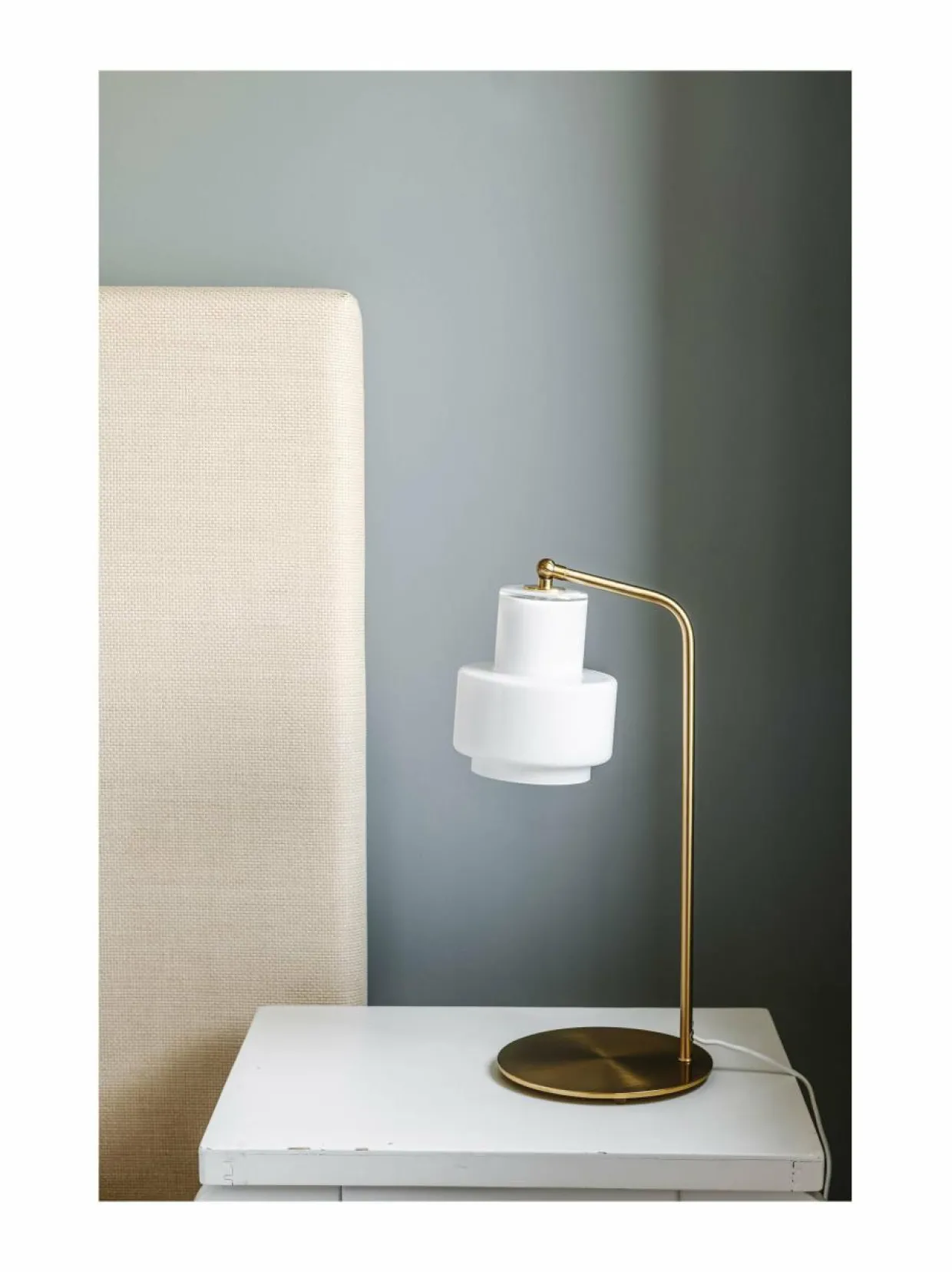 Jukka Jokisen ja Heikki Konun suunnitteleman Multi-seinä-, pöytä- ja jalkavalaisimen näyttävän linjakas olemus syntyy suupuhalletun opaalilasin ja harjatun messingin solmiessa jalon liiton. Huipulla kulman muodostava varsi kannattelee kerroksellista lasikupua, luoden tasapainoisen kokonaisuuden. Valaisimen arvokkuutta hehkuva henki kohottaa koko tilan tunnelman tavoitellulle tasolle.