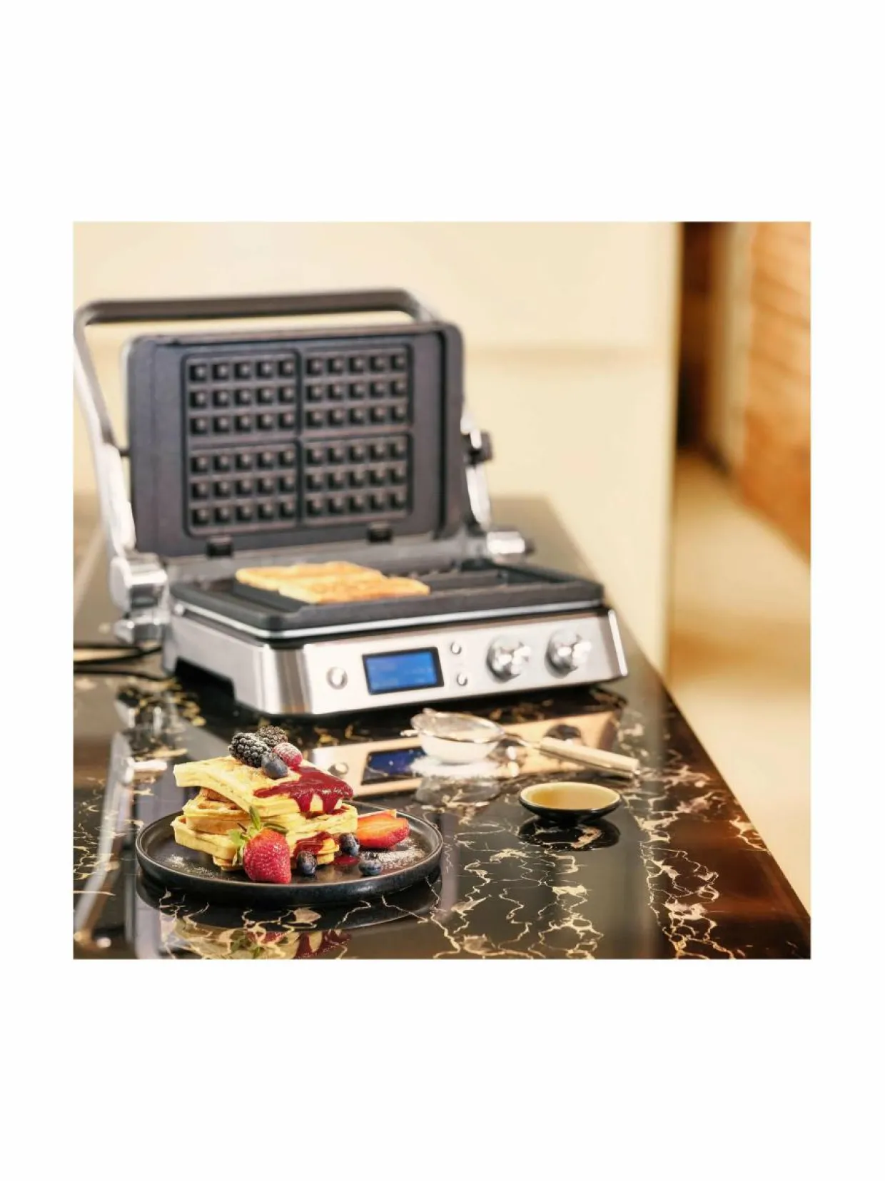 Braun MultiGrill 9 -sähkögrillissä on tilavat, pinnaltaan tarttumattomat ja konepesun kestävät paistolevyt, joilla grillaat mehukkaat hampurilaiset tai pihvit. Kätevä ja minimalistinen sähkögrilli on todellinen katseenvangitsija keittiössä.