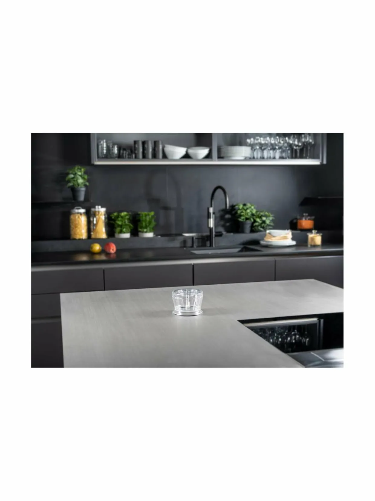 Mylly on Bamix-sauvasekoittimiin sopiva lisävaruste. Sillä voit jauhaa pähkinöitä ja mausteita, pilkkoa sipulia ja valkosipulia, vatkata kananmunia ja hienontaa juustoa. Läpinäkyvässä myllyssä on irrotettava terä, joten peseminen on helppoa.