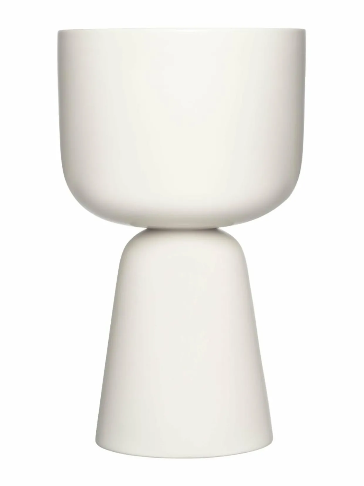 Isoille kasveille suunniteltu Nappula-ruukku on kuin veistos. Matti Klenellin suunnitteleman keramiikkaruukun voit asettaa suoraan lattialle tai tason päälle. Selkeälinjainen muotoilukieli tuo kasvit ja kukat hienosti esiin.