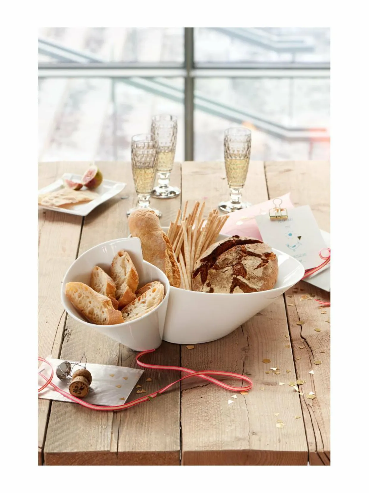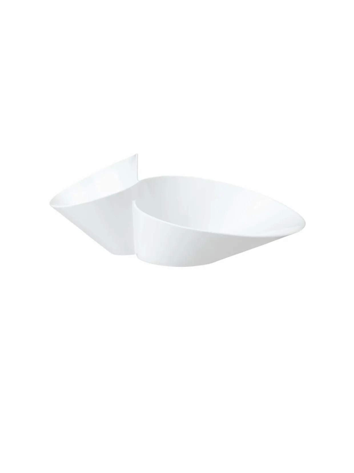Linjakkaasti muotoillun kaksiosaisen kulhon materiaali on mikron- ja konepesunkestävää posliinia.