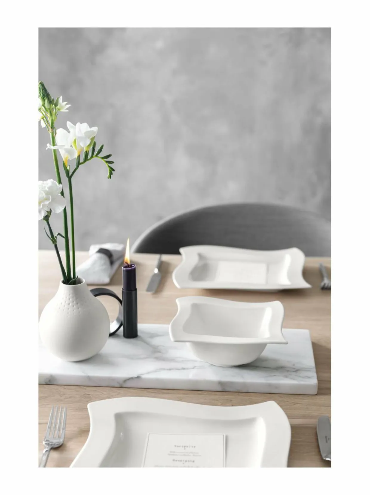 Villeroy & Bochin New Wave -kulho hurmaa modernilla ja leikkisällä muotoilullaan. Sen virtaavat ja epäsymmetriset linjat tekevät siitä katseenvangitsijan ruokapöydässä. Kulhon tilavuus on 0,6 litraa.