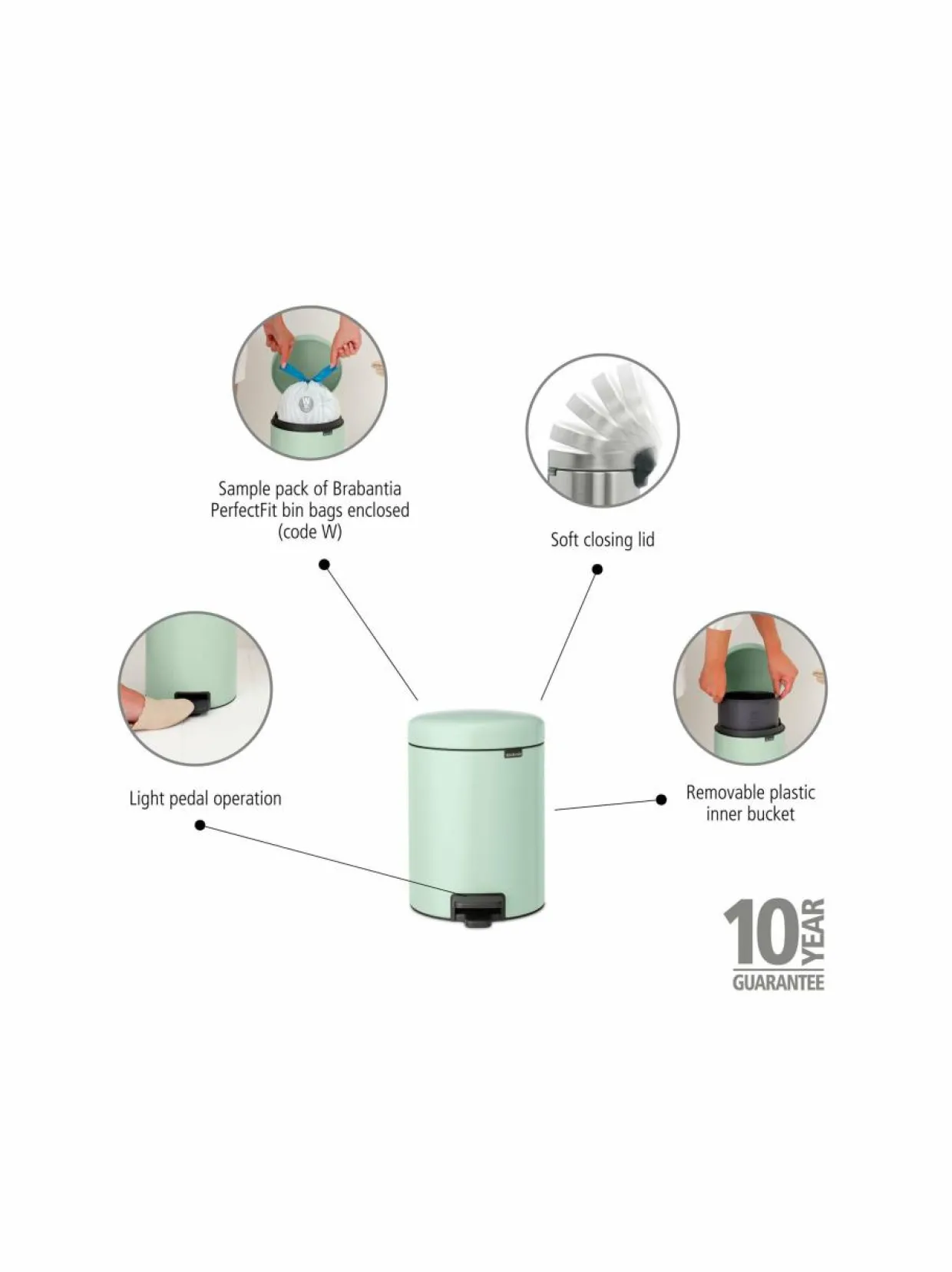 - Mukana näytepakkaus Brabantia PerfectFit -jätepusseja (koodi W)