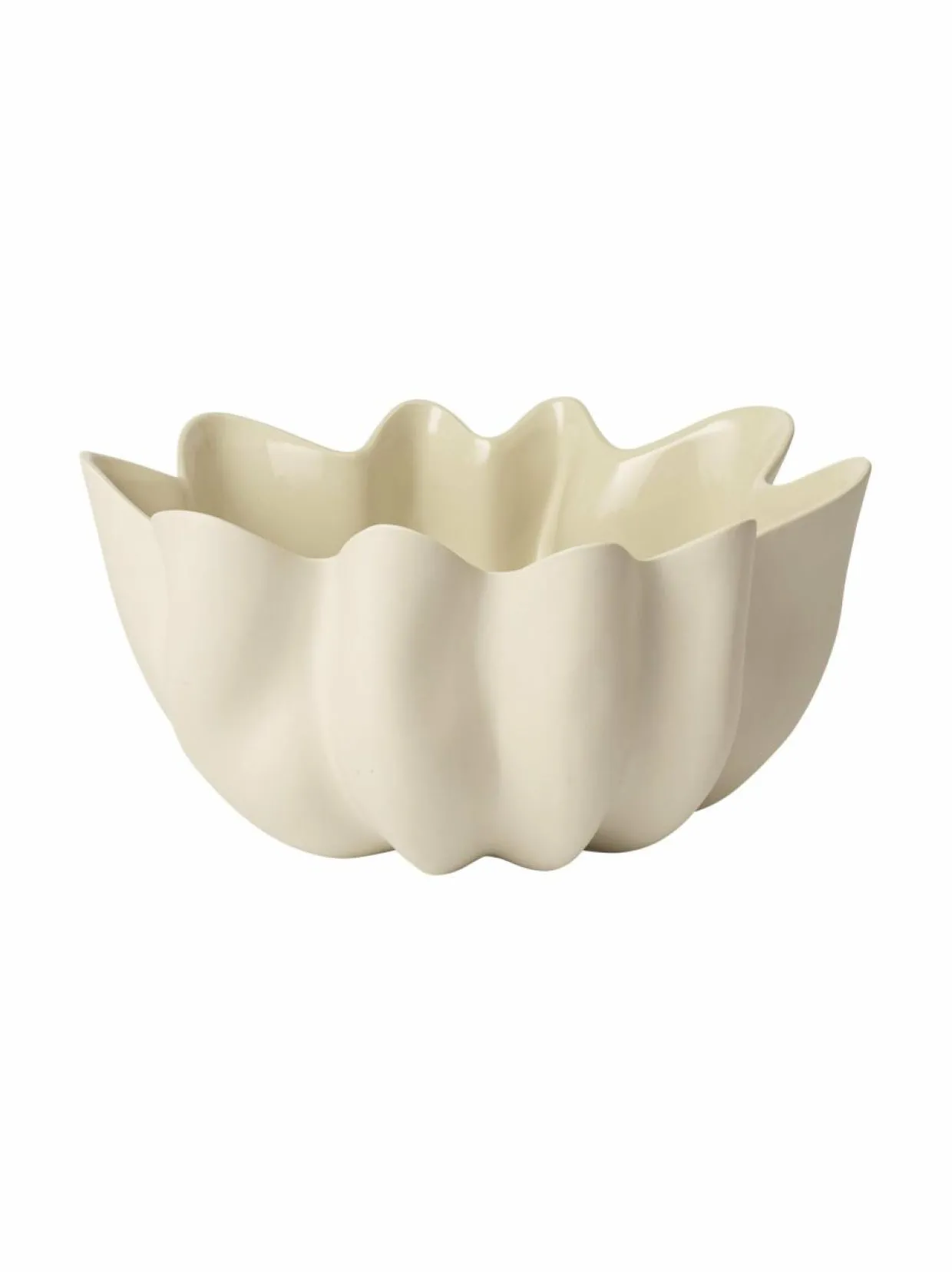 ferm LIVING Nium on kauniisti muotoiltu keramiikkakulho, jonka ulkopinta on lasittamaton ja sisäpuoli lasitettu. Sen elegantit, kankaanomaiset laskokset ja sisäpuolen lasite korostavat valon ja varjon leikkiä. Mitat 36 x 18 cm.