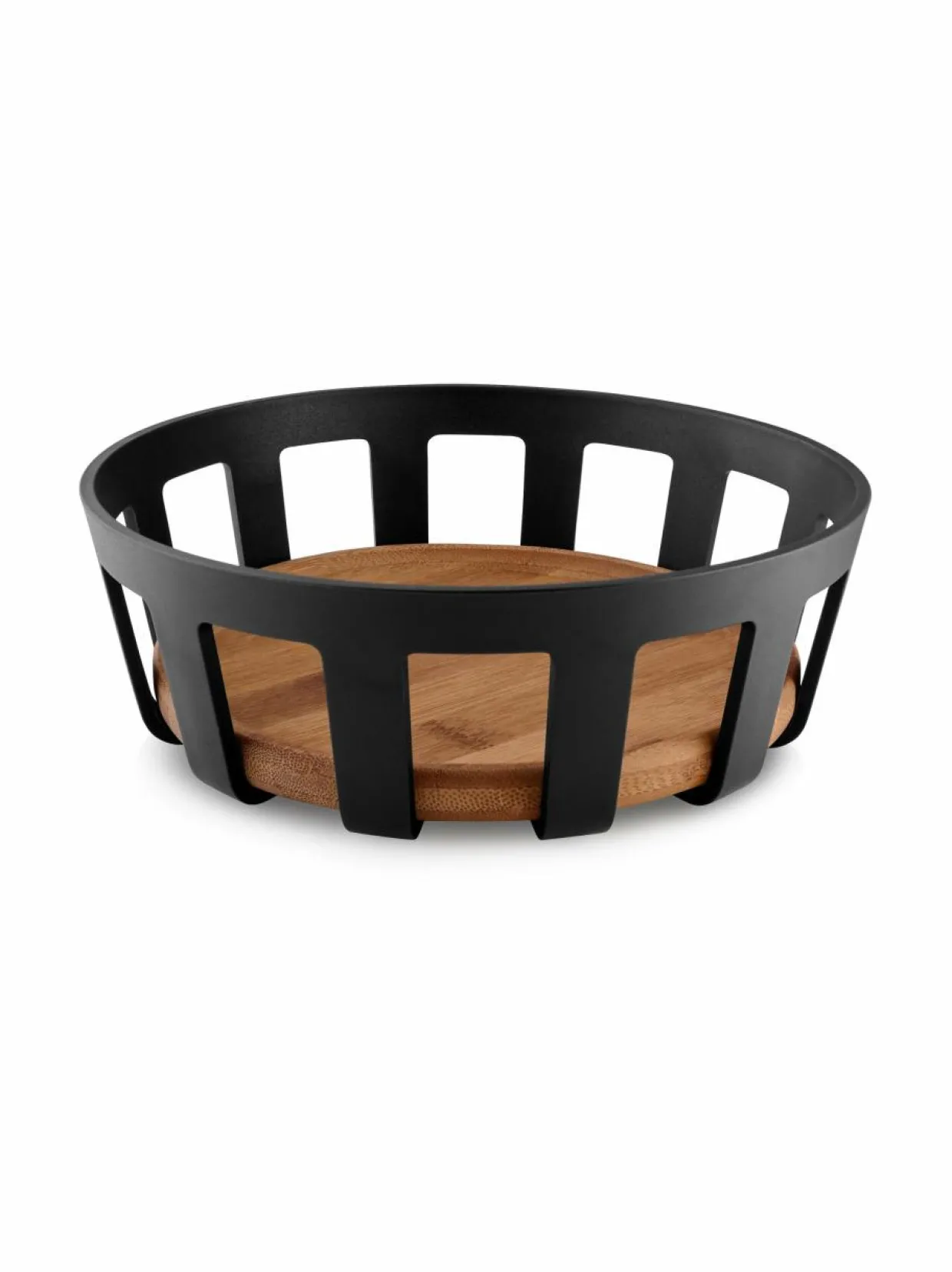 Eva Solon ajattomassa leipäkorissa toistuu Nordic Kitchen -sarjan tuotteille ominainen tumman sävyn ja puun yhdistelmä. Tuoreilla sämpylöillä täytettynä leipäkori on aamiais- tai brunssipöydän katseenvangitsija, mutta se sopii erinomaisesti myös vaikkapa hedelmäkoriksi.