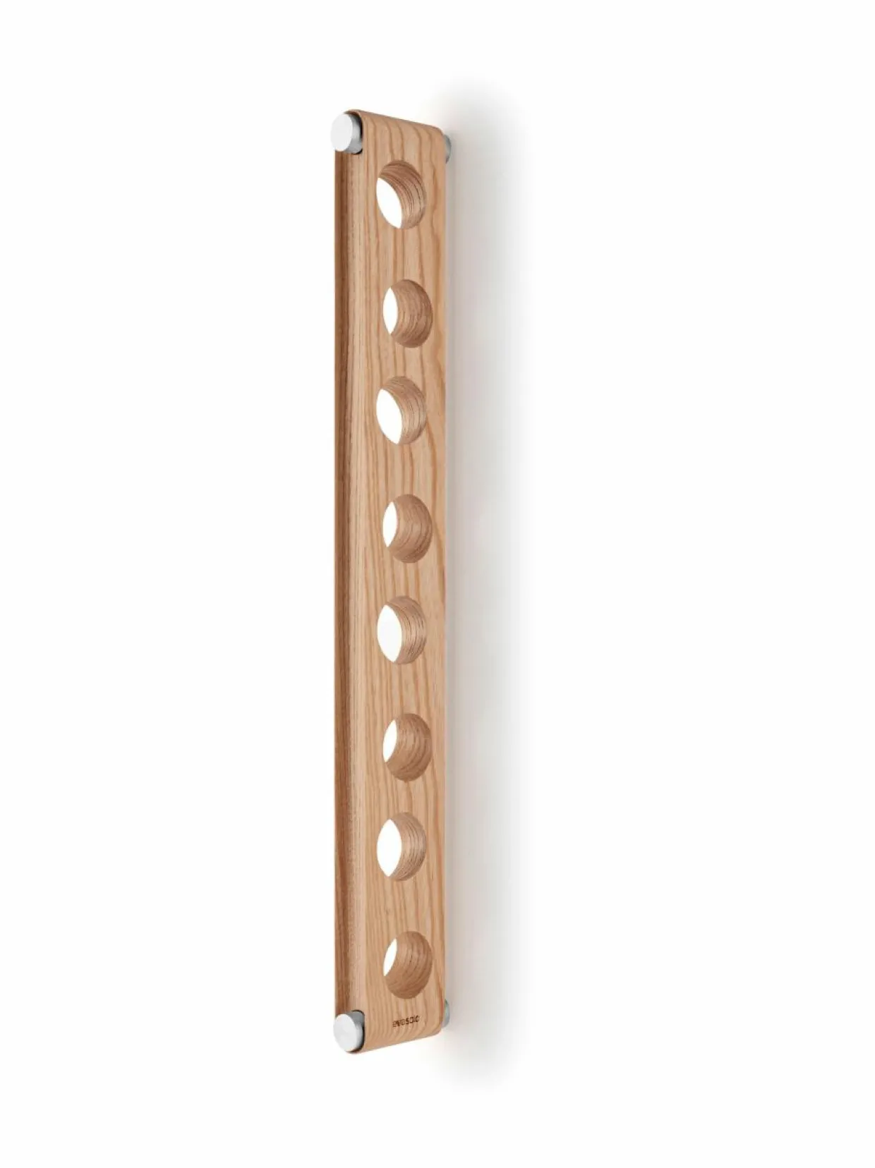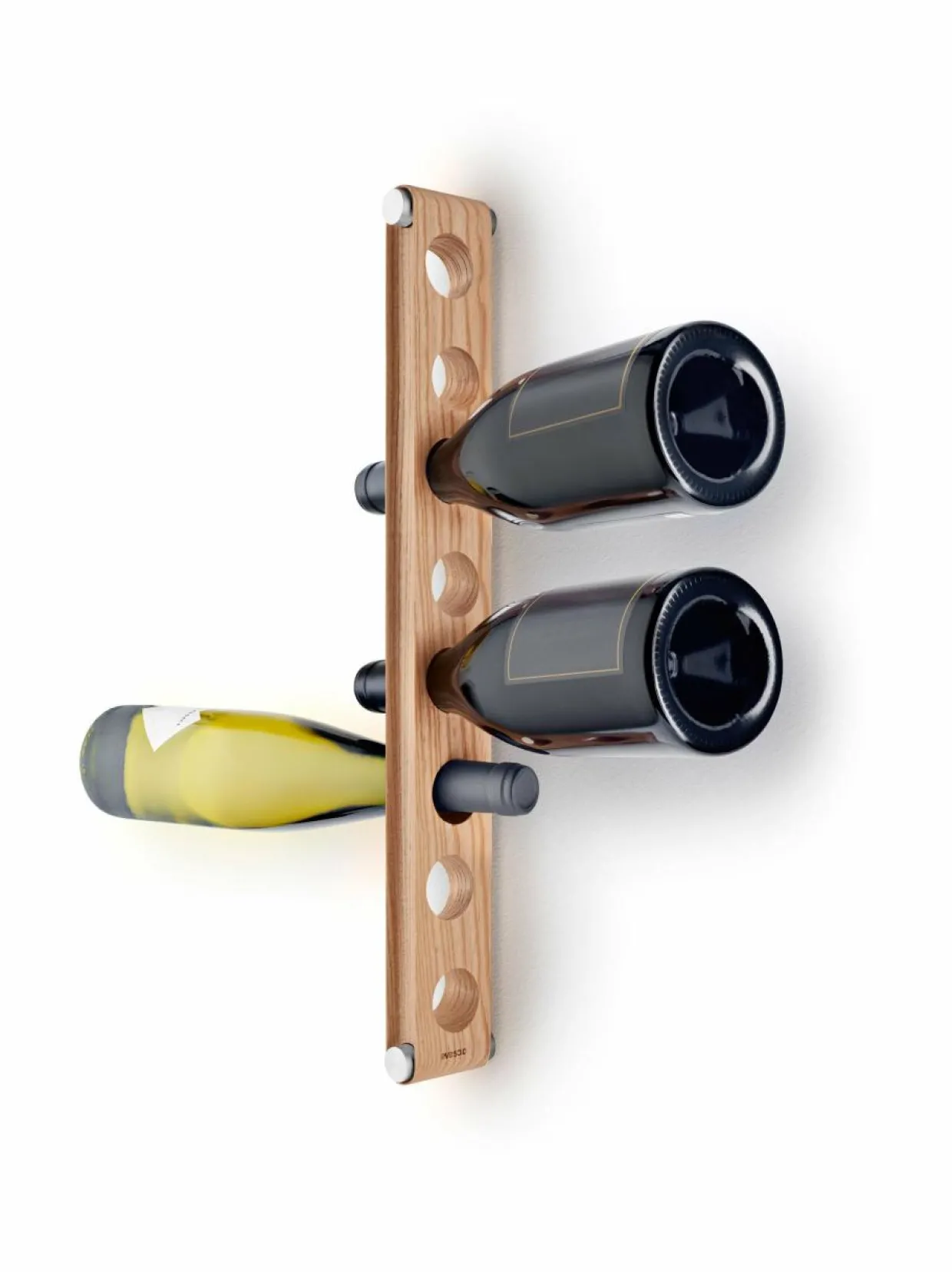 Eva Solo Nordic Kitchen -viinipulloteline on käytännöllinen ja näyttävä sisustuselementti, joka sopii muotoilunsa ansiosta pieneenkin keittiöön. Seinään kiinnitettävässä telineessä pullot eivät vie tilaa keittiön tasolta tai kaapeista. Teline sopii useimmille viinipulloille, ja siihen mahtuu kahdeksan pulloa.