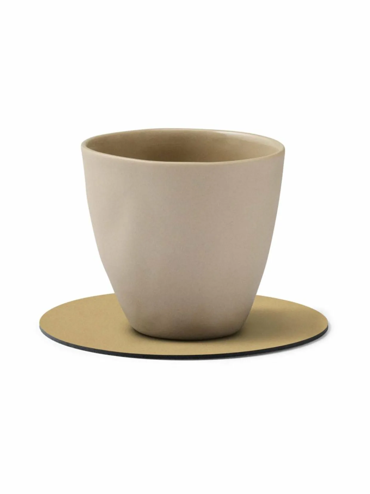 Tanskassa suunniteltu ja valmistettu lasinalusta on Oeko-Tex®-kierrätysnahkaa. Lasinalunen saa ilmeensä mokkamaisesta pinnasta ja pehmeästä rakenteesta. Se on vedenpitävä ja helppo puhdistaa. Halkaisija: 10 cm. Paksuus: 1,6 mm.
