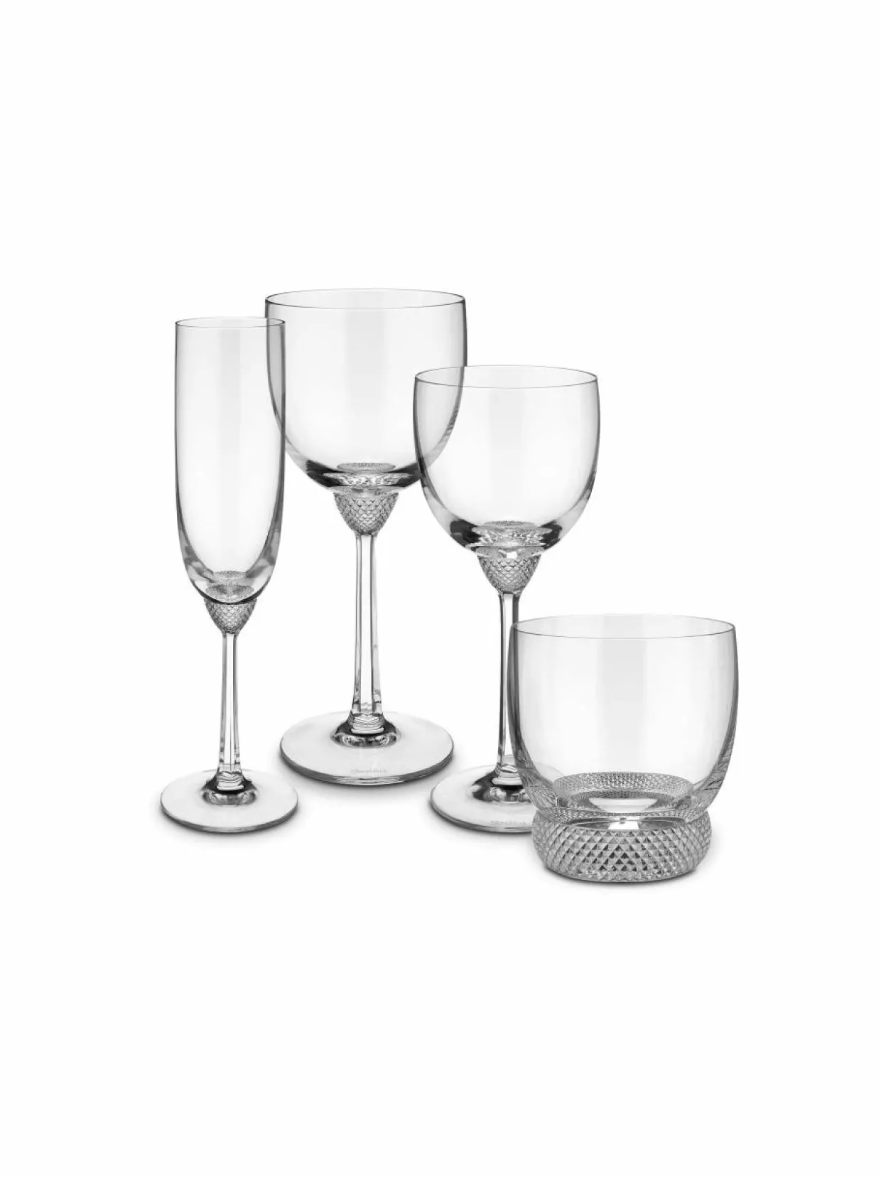 Villeroy & Bochin klassisen elegantti Octavie-valkoviinilasi luo juhlan tunnelmaa. Lasisto on saanut inspiraationsa Eugen Bochin ja Octavie Villeroyn hääkattauksesta.