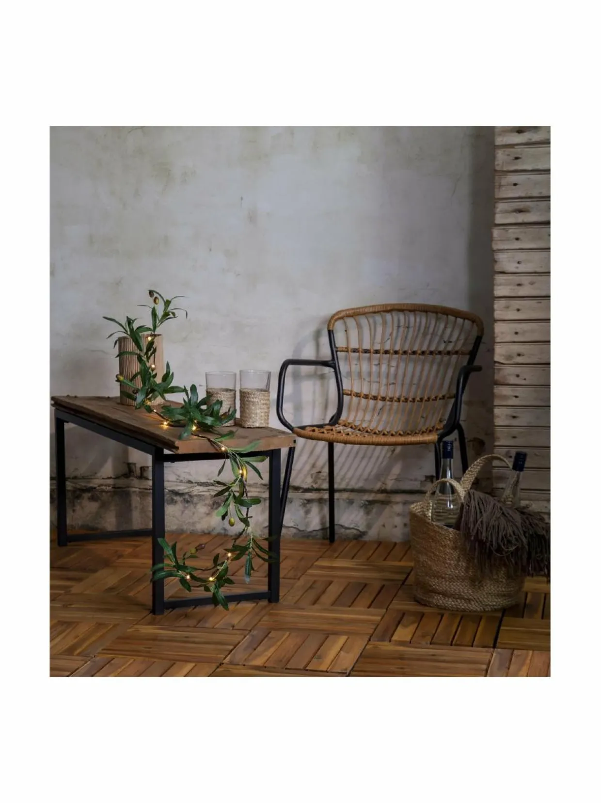 Upea ja aidolta näyttävä paristokäyttöinen koristeköynnös, oliivin lehdillä ja oliiveilla. Sopii ulko- ja sisäkäyttöön esimerkiksi pöytäkattauksen somisteeksi. Helppo muotoilla. Köynnöstä valaisee 20 pientä lämpimän valkoista LED-valoa.