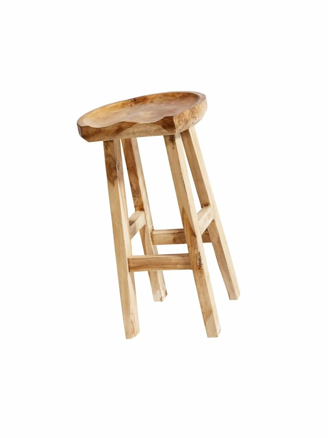MUUBS-merkin Oval-baarijakkaran luonnonläheinen ilme tuo ripauksen lämpöä ja tyyliä mihin tahansa tilaan. Jakkaran valmistuksessa on käytetty karkeaa tiikkiä, joka tunnetaan erinomaisesta kestävyydestään. Istuinkorkeus on 80 cm, mikä tekee siitä ihanteellisen baaritiskin äärelle.