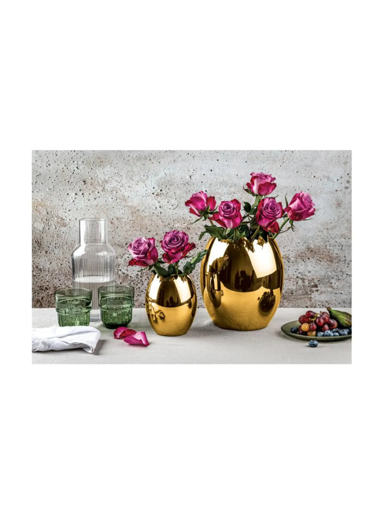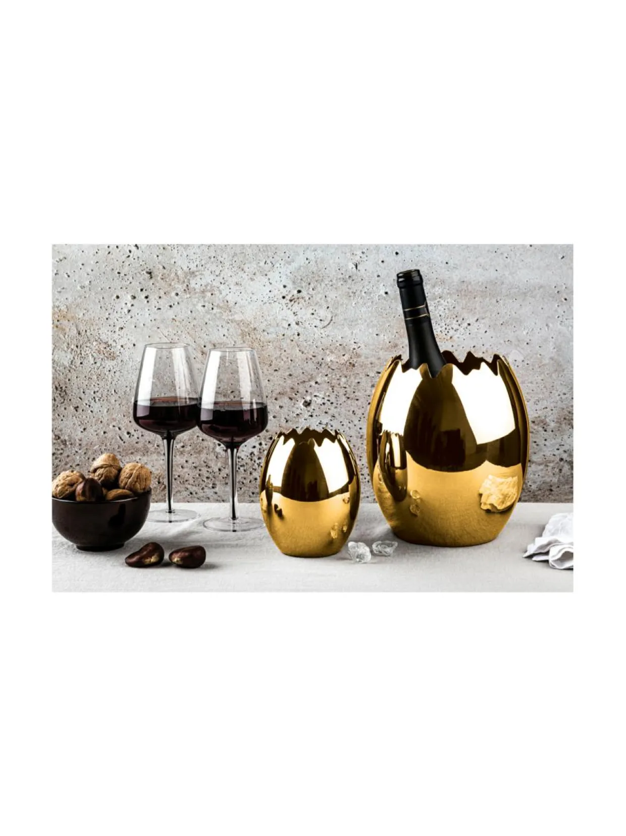 Ovo Oro Ice (matta kulta) viininjäähdyttimen materiaali on konepesunkestävää korkealaatuista suomalaista ruostumatonta terästä ja se sopii myös koriste-esineeksi ja/tai maljakoksi. Halkaisija 19 cm, korkeus 22 cm ja tilavuus 4,5 lt.