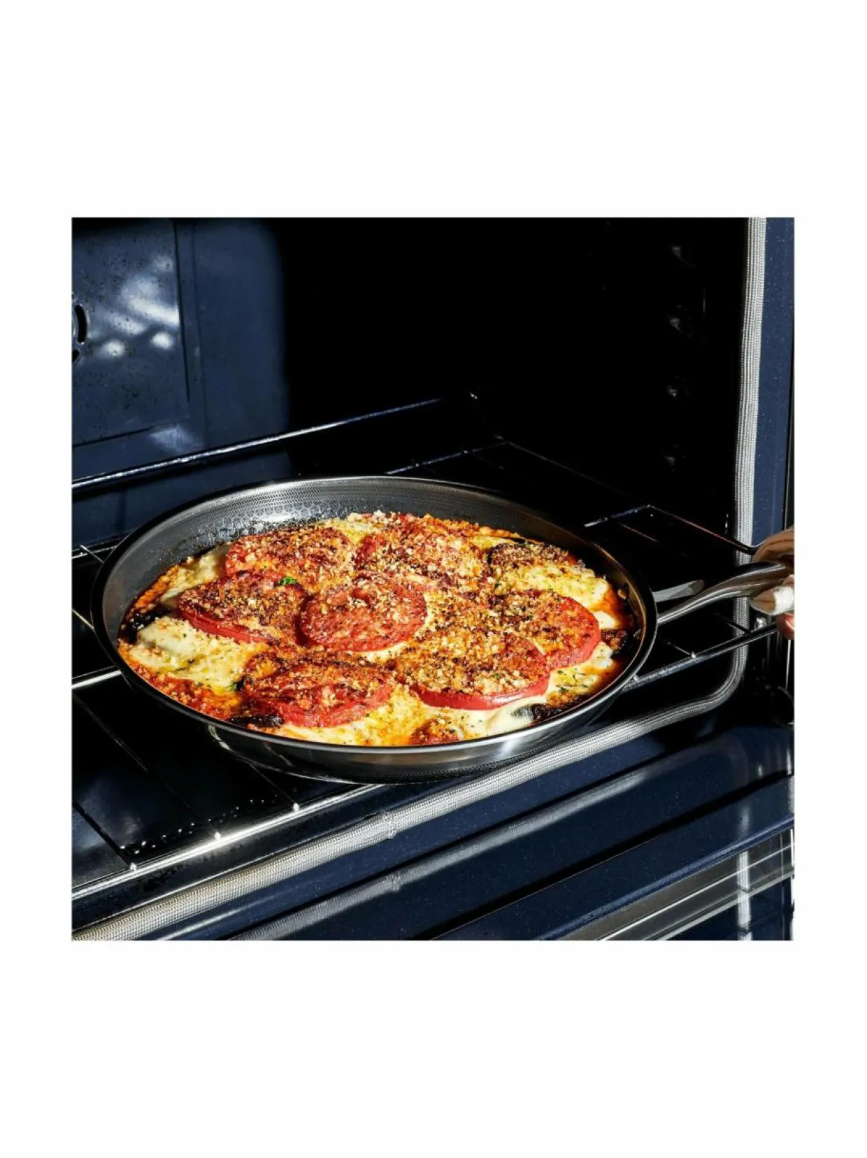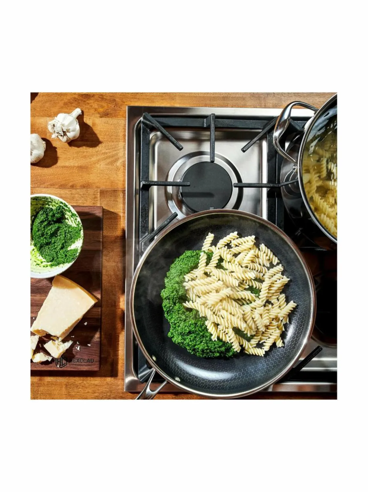 Hieman suurempi HexClad-paistinpannu tarjoaa erinomaista suorituskykyä ilman haitallisia kemikaaleja, yhdistäen tarttumattoman pinnan käytännöllisyyden huippuluokan kestävyyteen. Se on monipuolinen valinta jokapäiväiseen ruoanlaittoon, jonka avulla paistat lihaa kuumalla lämmöllä, haudutat vihanneksia miedolla lämmöllä tai lämmität aterioita helposti. Suurempi koko tekee siitä ihanteellisen useiden annosten valmistukseen – pannuun mahtuu helposti kaksi pihviä kerralla. Halkaisija: 30 cm.