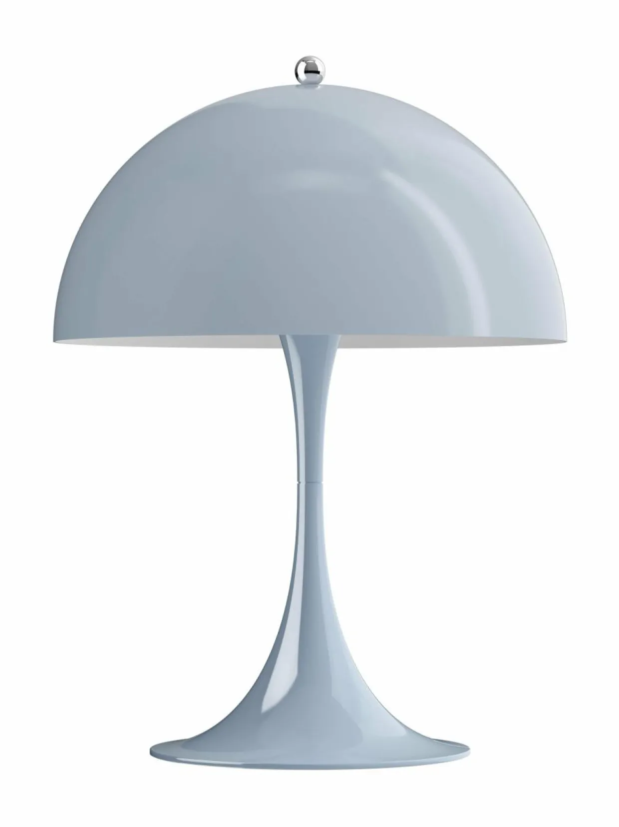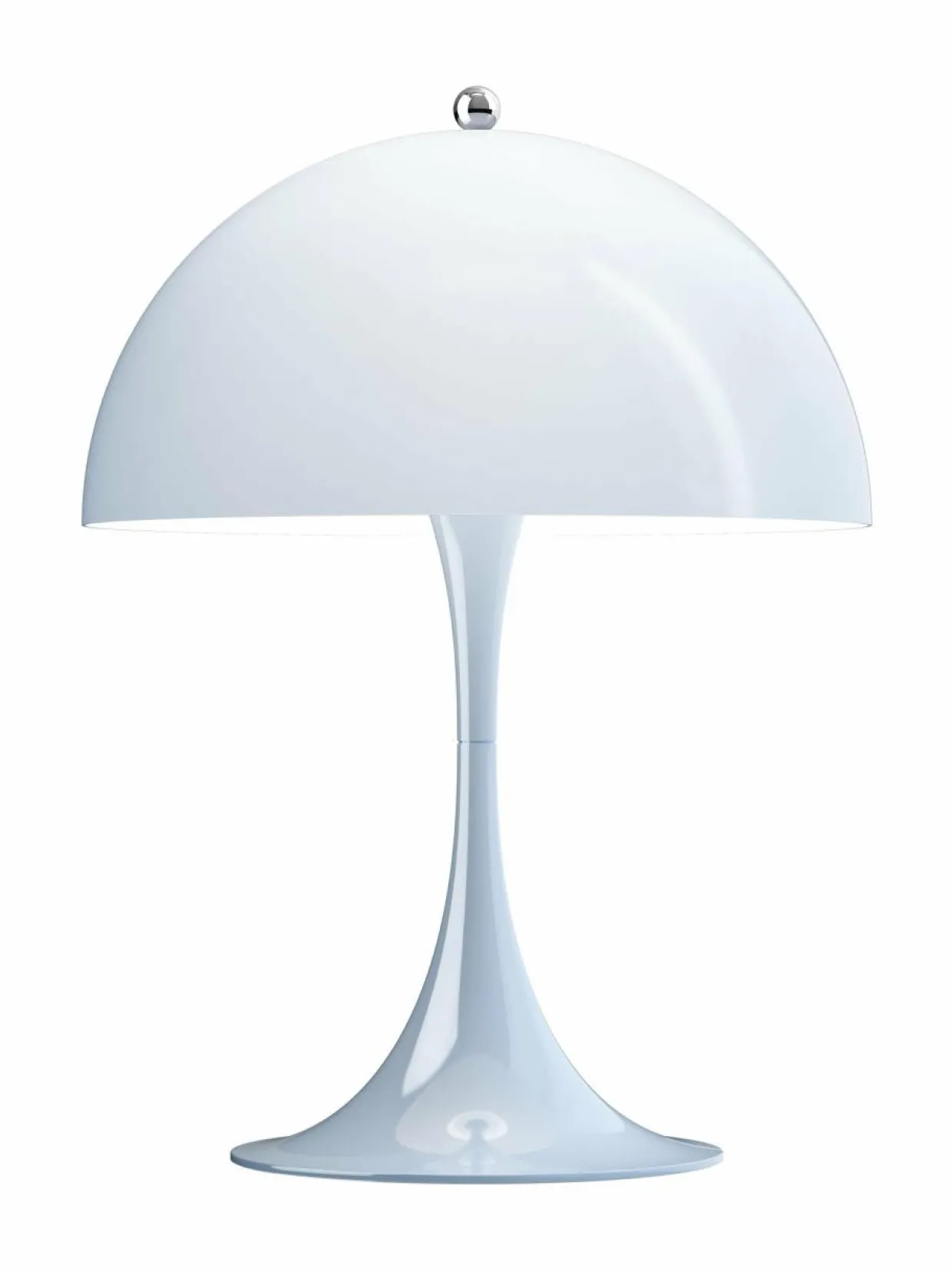 Alun perin Verner Pantonin ja Louis Poulsenin yhteistyössä vuonna 1971 suunnittelema Panthella on ainutlaatuinen malli, joka ei ainoastaan heijasta Pantonin leikkisää tyyliä, vaan siinä myös hyödynnetään orgaanisia muotoja poikkeuksellisen valon tuottamiseksi. Puolipallon muotoinen varjostin ohjaa suurimman osan valosta alaspäin niin, että se heijastuu suppilomaisesta jalustasta, jolloin valo leviää pehmeänä hajavalona ympäristöön. Panthella 250 -pöytävalaisin on pienempi malli, jonka varjostimen halkaisija on 250 mm, joten se sopii hyvin monenlaisiin tiloihin.