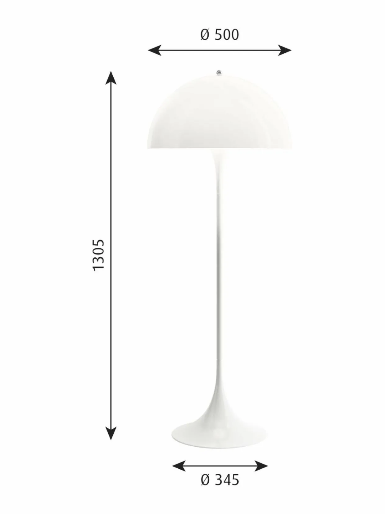Verner Pantonin maailman mainetta niittänyt Louis Poulsen Panthella-valaisin antaa pehmeää ja miellyttävää valoa. Lattiavalaisimen puolipallon muotoinen varjostin heijastaa valoa alaspäin, ja varjostimen materiaalin ansiosta suurin osa valosta leviää pehmeästi ympäröivään tilaan.
