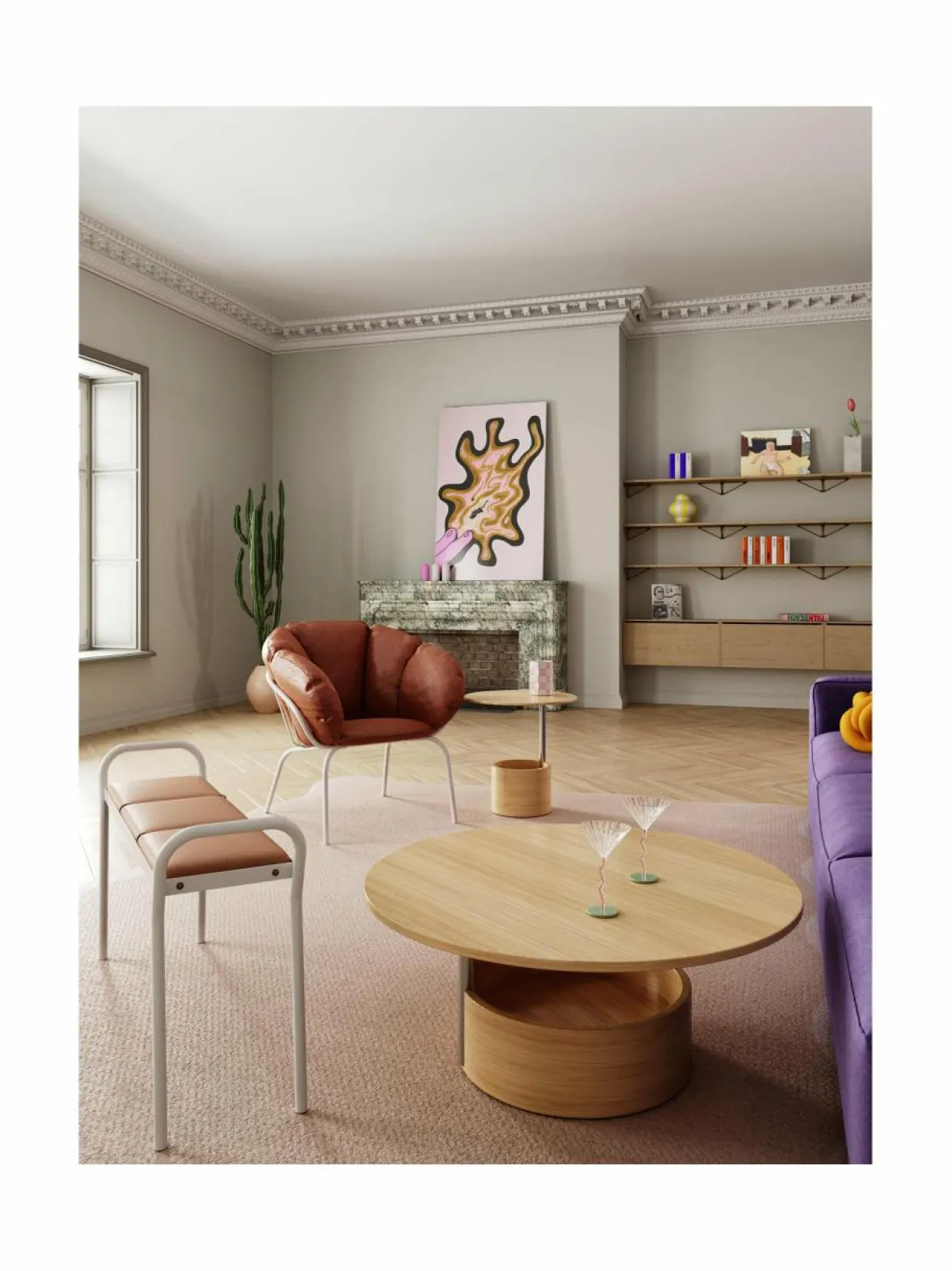 Sohvapöydän nimi Parasol viittaa leikkisästi aurinkovarjoihin, englanniksi ”parasol”. Pöydän jalusta nimittäin toimii samalla säilytystilana vaikkapa viltille, lasten leluille tai lukemistaan odottaville aikakausilehdille. Esineet eivät ole täysin piilossa, mutta kuitenkin suojassa varjon alla. Tämä sohvapöytä on enemmän kuin vain huonekalu – se on taiteellinen elementti, joka tuo sisustukseesi modernia tyylikkyyttä. Toimitetaan osissa. Mitat: Halkaisija 50 cm ja korkeus 50,2 cm.