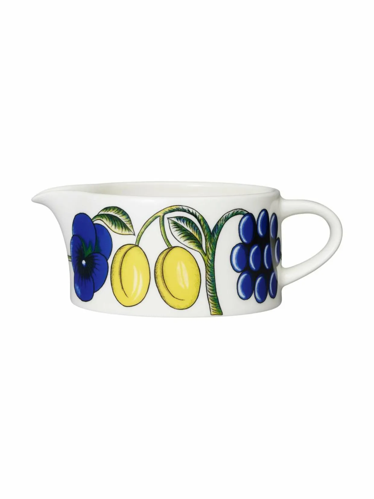 Pieni Paratiisi-kaadin on täydellinen kastikkeille tai kahvimaidolle. Pirteän värikkäät koristeet kertovat suunnittelija Birger Kaipiaisen ainutlaatuisesta taidosta yhdistää värejä. Pirteän värikäs Paratiisi on yksi Arabian design-klassikoista.