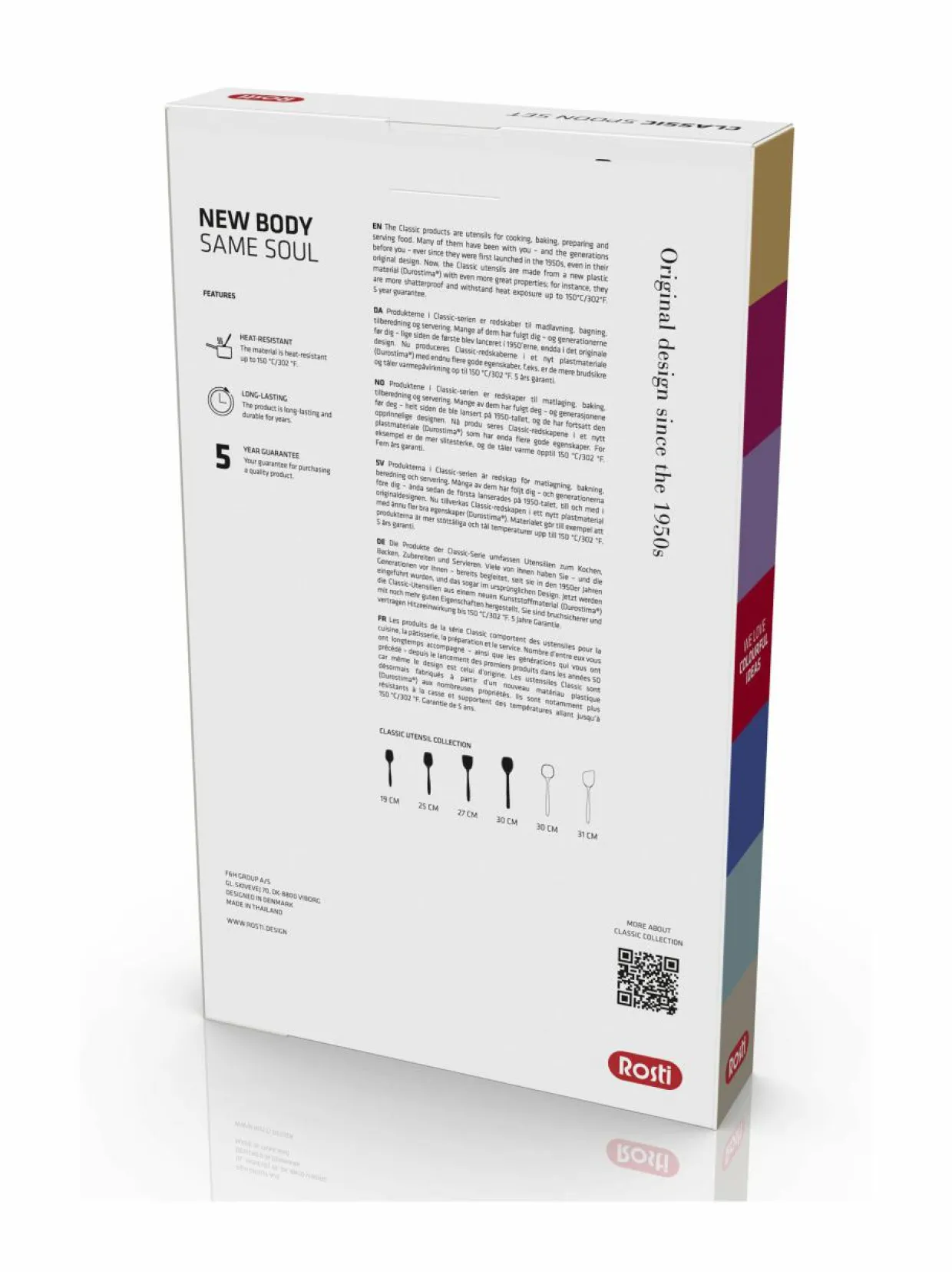 Valmistettu uudesta innovatiivisesta Durostima®-muovista, joka on kierrätettävää muovia ja joka lupaa sekä kestävyyttä että ympäristöystävällisyyttä.Tuotenumero170986470 MateriaaliDurostima®-muovi Hoito-ohjeetElintarviketurvallinen. Astianpesukoneen kestävä. Voidaan käyttää mikroaaltouunissa. Pakastinkestävä. ValmistusmaaThaimaa VäriWHITE KokoOne size Avainsanatlusikkasarja, keittolusikka, tarjoilulusikka, keittiötarvikkeet, ruokailuvälineet, Rosti
