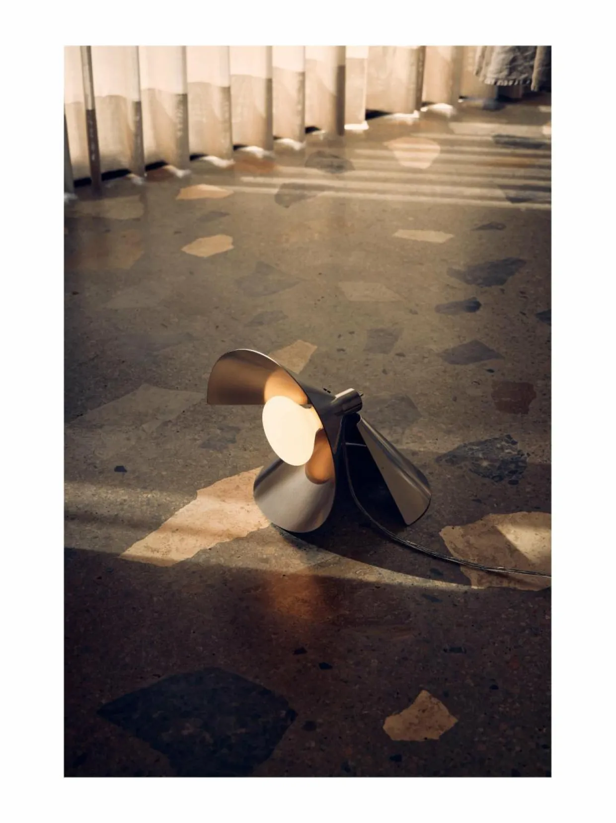 Frandsen-merkin Peel-pöytävalaisin on hollantilais-tanskalaisen suunnittelijan Sissel Gram Warringan uusin luomus. Huolellisesti valmistettu yhdestä ruostumattomasta teräslevystä ja taidokkaasti leikattu pyöreään muotoon tarkalla viillolla. Warringan innovatiivinen muotoilu sulattaa saumattomasti muodot ja toiminnot luodakseen pehmeämmän, leikkisä esteettisen ilmeen, jota ei yleensä yhdistetä metalleihin. Peelin erottuvan muodon ansiosta valaisimen pehmeä, ympäristön valo tarjoaa hajavalon.