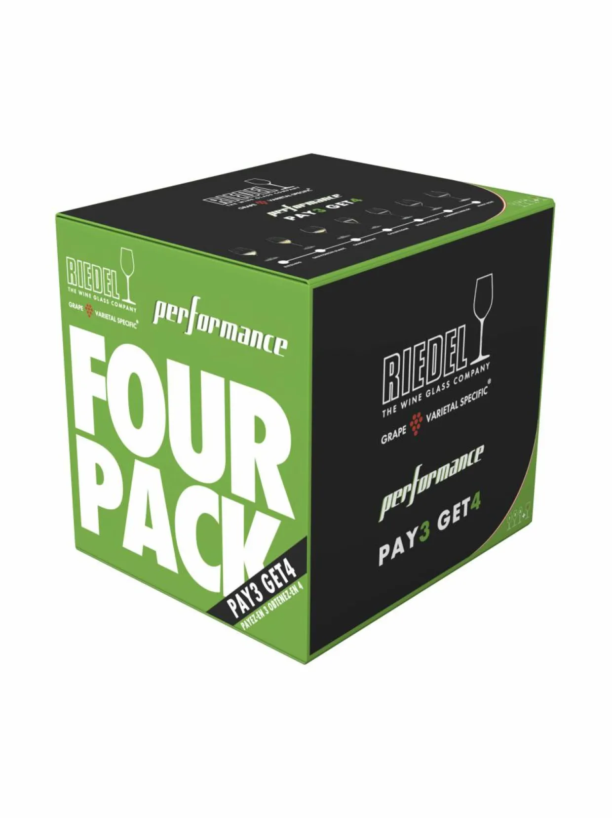 Riedelin Performance-valkoviinilasi on suunniteltu erityisesti Riesling-valkoviineille. Lasin muoto on täydellinen tasapainottamaan valkoviinien korkeaa happamuutta ja jäännössokeria. Lasien tilavuus on 623 ml. Pakkaus sisältää yhteensä neljä viinilasia.