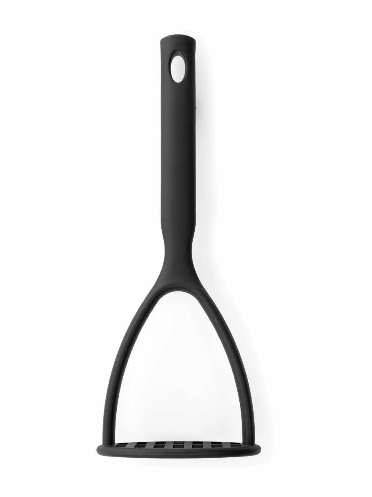 Perunoiden ja muiden keitettyjen vihannesten soseuttamiseen soveltuva survin on kuumuutta kestävää nylonia. Pituus 25,5 cm.