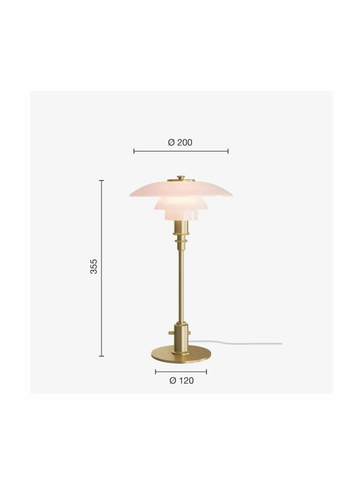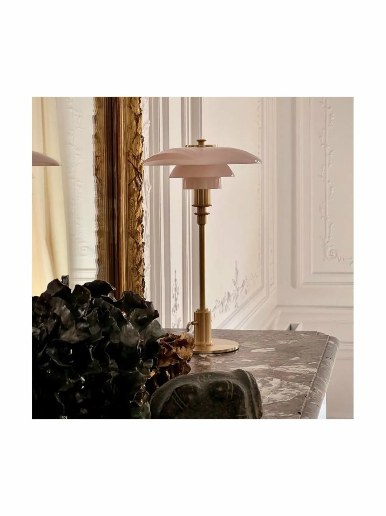 PH 2/1 Pale Rose -pöytävalaisin on uudistettu versio klassisesta Poul Henningsenin mallista. Tässä kolmivarjostinjärjestelmän valaisimen pienessä versiossa on suupuhalletut vaaleanroosat lasivarjostimet, joiden alapinta on hiekkapuhallettu valkoiseksi. Tämä saa aikaan kauniin lämpimän valon, joka on miellyttävä ja häikäisemätön.Lisäksi runko on valmistettu harjatusta messingistä, jonka ohuet juovat myötäilevät valaisimen muotoa. Kiillottamaton materiaali patinoituu kauniisti ajan myötä ja antaa valaisimelle persoonallisen ilmeen.Klassisen pöytävalaisimen modernin version kaikki yksityiskohdat on huolella mietitty. Käsin valmistetut elementit tekevät jokaisesta valaisimesta ainutlaatuisen esimerkin laadukkaasta käsityötaidosta.