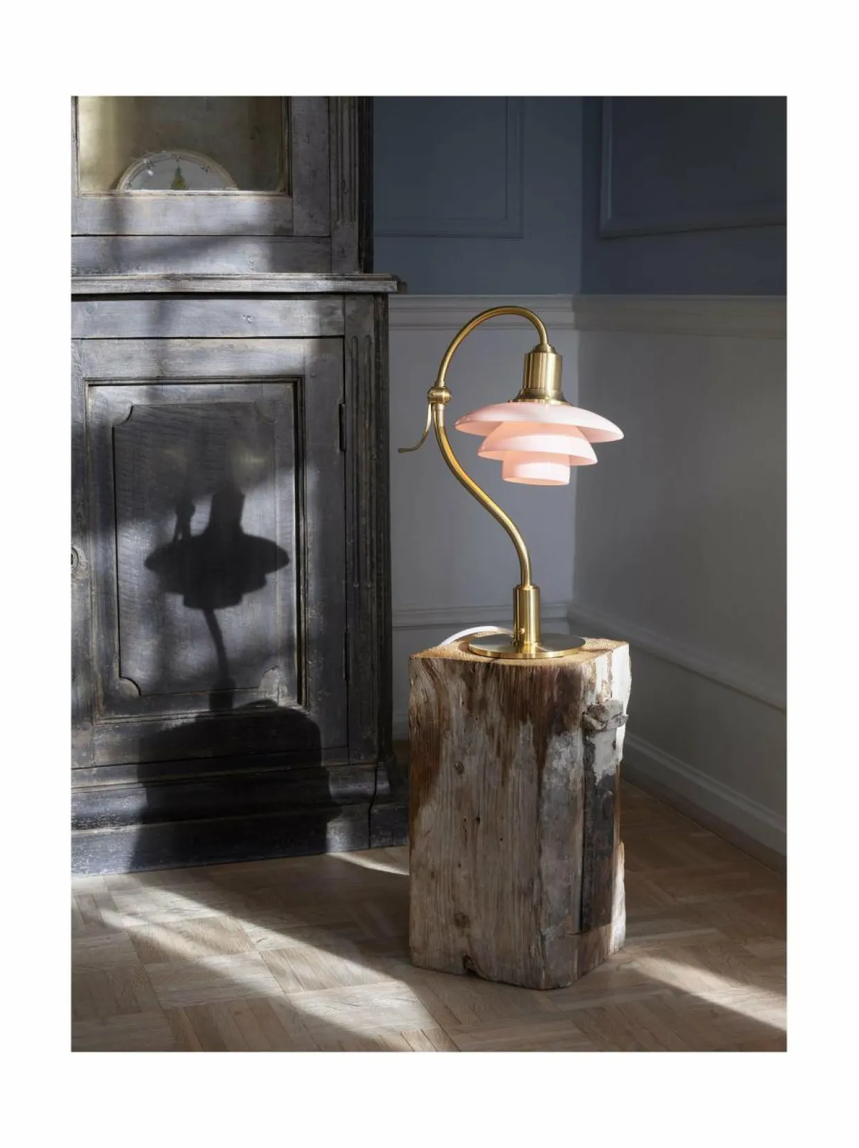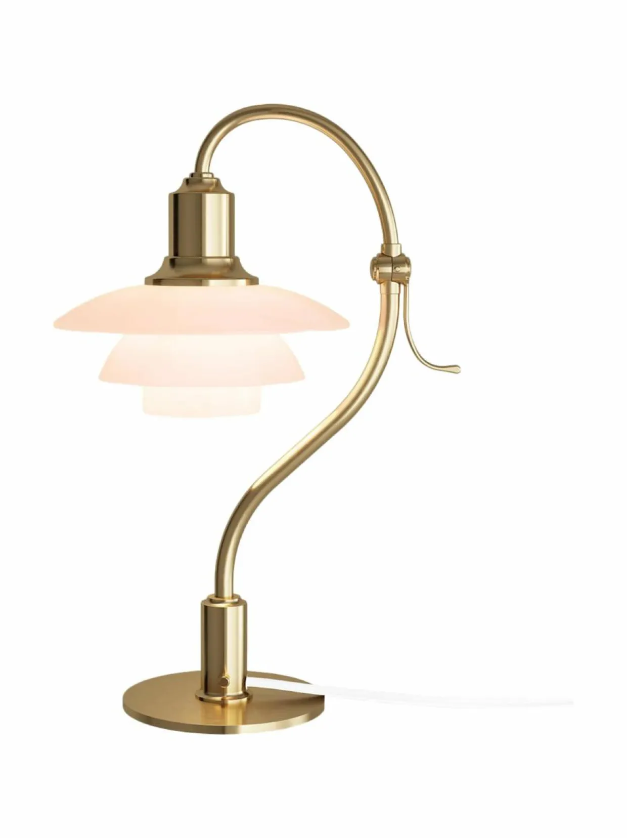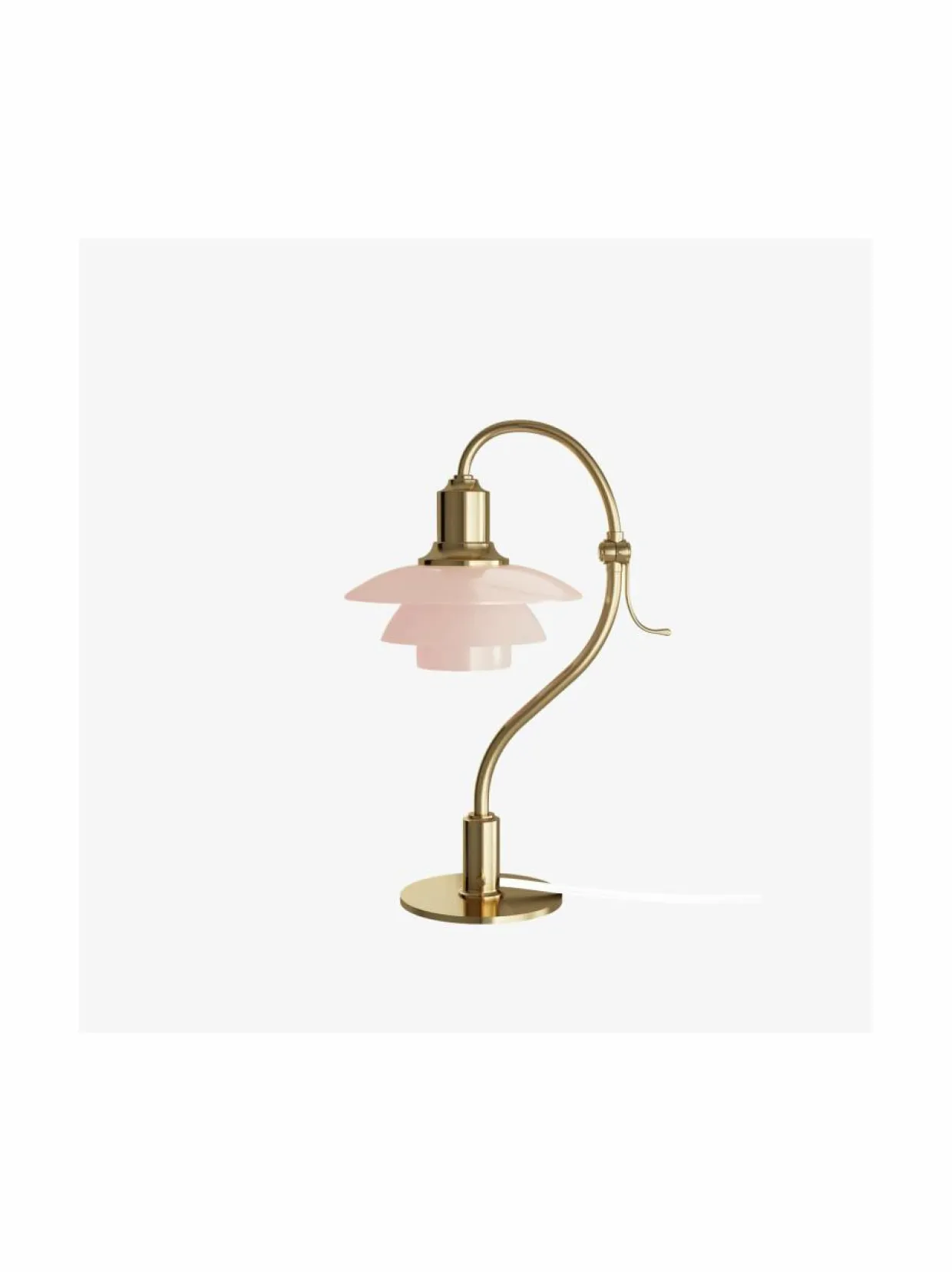 Varren tunnusomainen kaarevuus tekee uudesta PH 2/2 Question Mark Pale Rose -pöytävalaisimesta helposti tunnistettavan.Suupuhalletut vaaleanroosat lasivarjostimet tuovat hieman lisää tyylikkyyttä jo ennestään ikoniseen Poul Henningsenin malliin. Pöytävalaisimen varsi, jalusta ja kanta on valmistettu kauniista harjatusta messingistä, ja niiden ohuet juovat myötäilevät valaisimen muotoa. Jos messinkiä ei kiilloteta, se patinoituu kauniisti ajan myötä, mikä antaa valaisimelle sen yksilöllisen ilmeen.Yksityiskohdissa ei ole säästelty: kytkin on hillitty ja tyylikäs ja valaisimen säädettävää yläosaa voidaan kallistaa 45 astetta oikealle tai vasemmalle, kääntämällä varren keskellä olevaa kädensijaa.