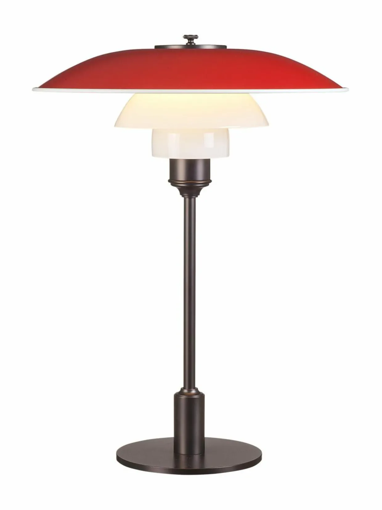 Modernin nostalginen PH 3½-2½ -pöytävalaisin tuottaa häikäisemätöntä ja taloudellista valoa. Poul Henningsenin muotoilemassa valaisimessa on kolme varjostinta, joiden muotoilu perustuu logaritmiseen spiraaliin. Metallisen ylävarjostimen valkoinen alapinta heijastaa valoa pehmeästi alaspäin samalla kun valkoisesta suupuhalletusta opaalilasista valmistetut alavarjostimet heijastavat valon pehmeästi huonetilaan. Valaisimen jalusta on lakattua messinkiä. Varjostimen halkaisija on 33 cm ja korkeus 45 cm.