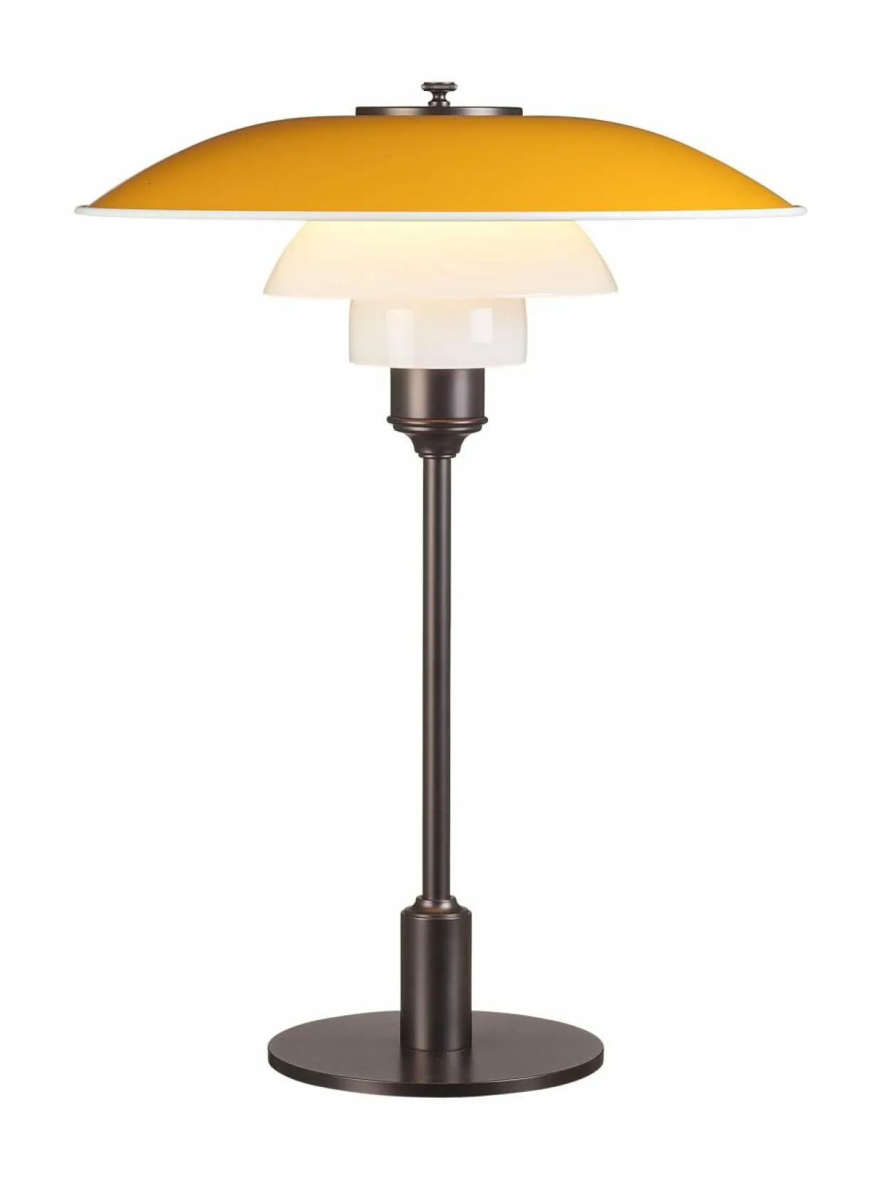 Modernin nostalginen PH 3½-2½ -pöytävalaisin tuottaa häikäisemätöntä ja taloudellista valoa. Poul Henningsenin muotoilemassa valaisimessa on kolme varjostinta, joiden muotoilu perustuu logaritmiseen spiraaliin. Metallisen ylävarjostimen valkoinen alapinta heijastaa valoa pehmeästi alaspäin samalla kun valkoisesta suupuhalletusta opaalilasista valmistetut alavarjostimet heijastavat valon pehmeästi huonetilaan. Valaisimen jalusta on lakattua messinkiä. Varjostimen halkaisija on 33 cm ja korkeus 45 cm.