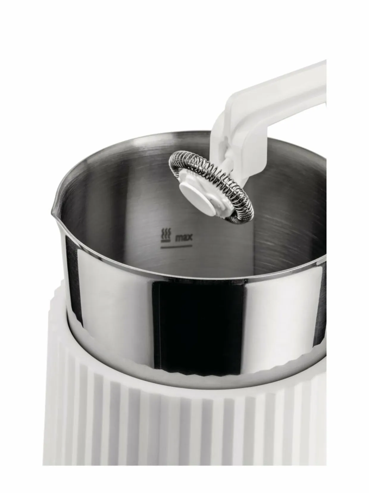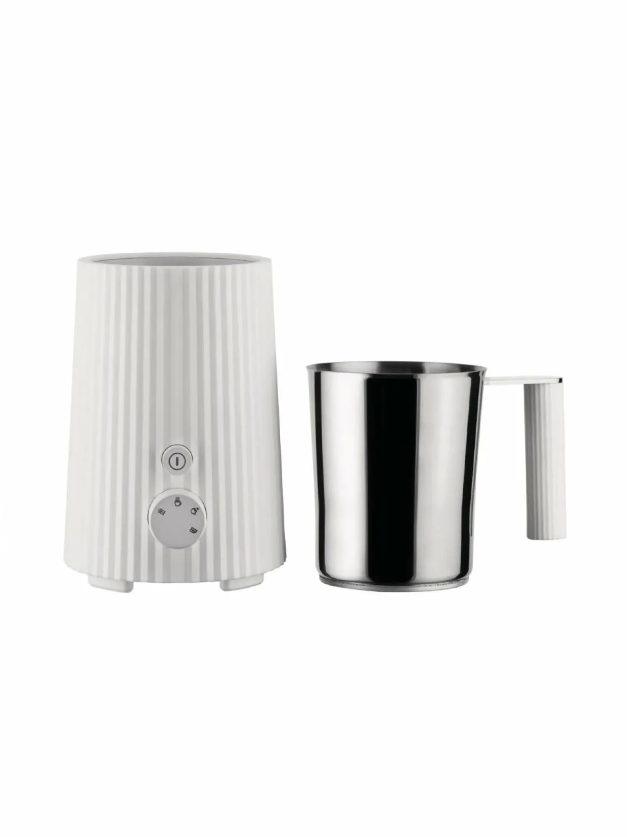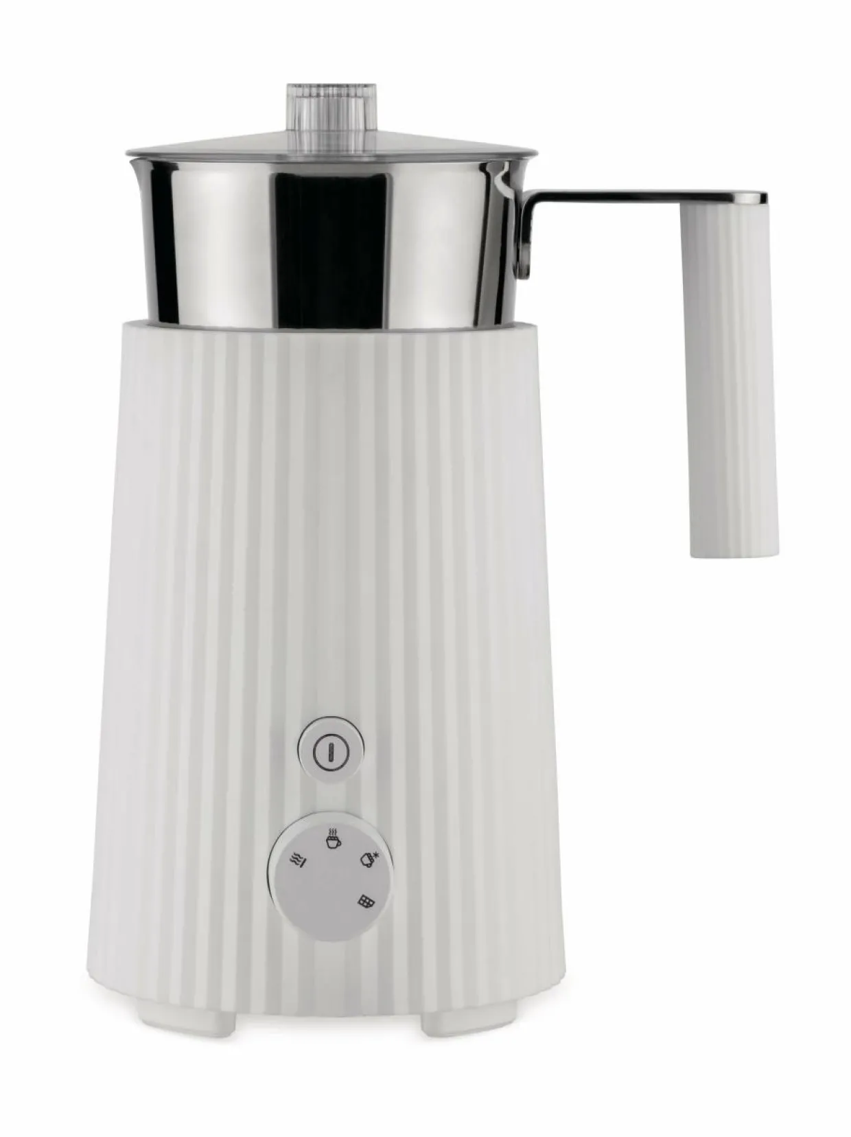 Maidonvaahdotin Alessin Plissé-sarjasta luo keittiöösi kaunista kontrastia. Sitä voi käyttää sekä yksinkertaisen cappucinon että monimutkaisemmankin erikoiskahvin valmistukseen. Päälle ja pois kytkeminen tapahtuu yhden ja saman napin painalluksella. Teräsosat ovat 18/10 ruostumatonta terästä. Suunnitellut Michele De Lucchi.
